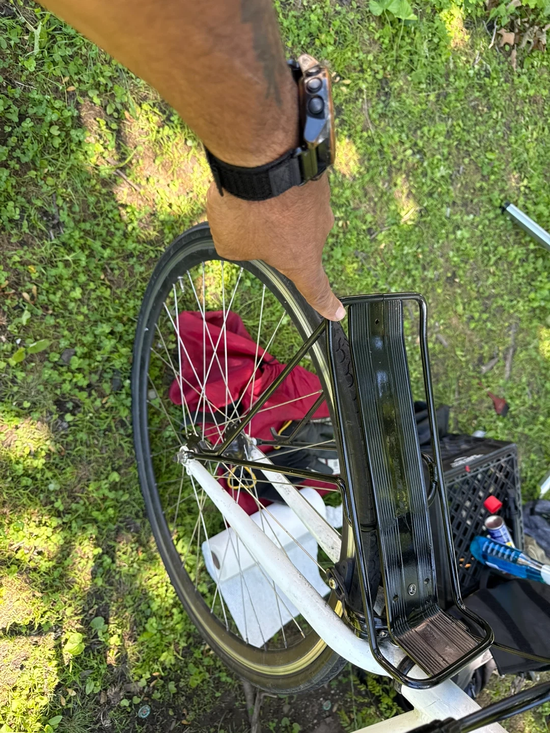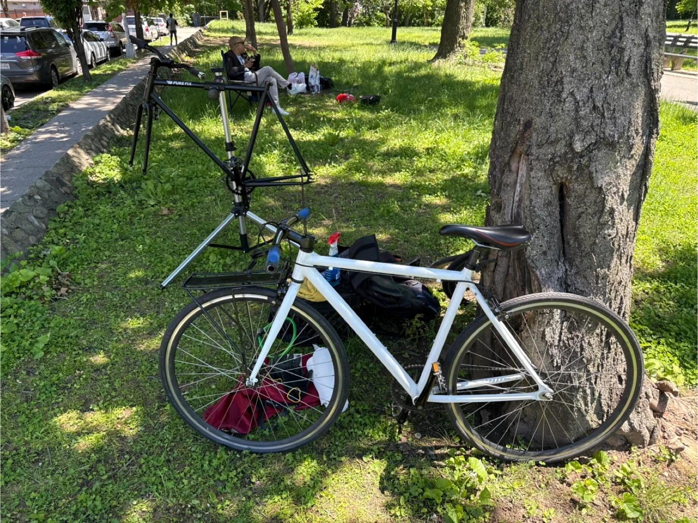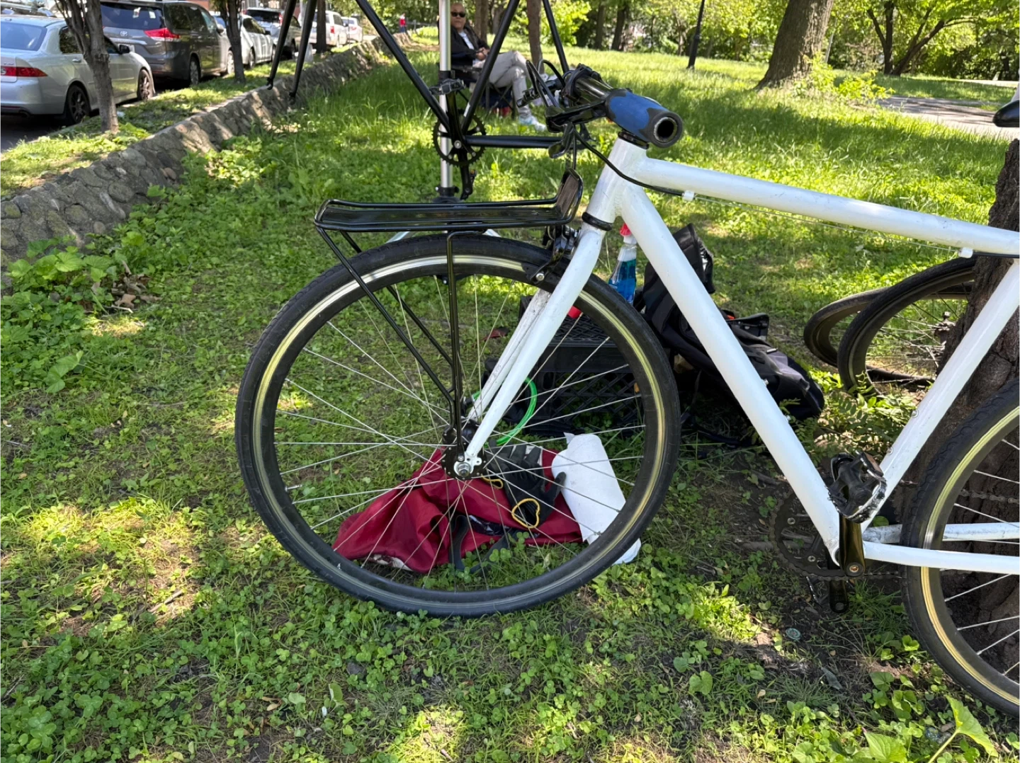 White Single-Speed Commuter Bicycle with Rack