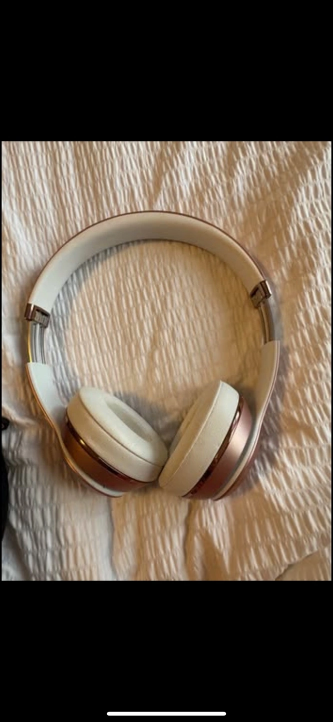 Bears solo3 . Rose gold colour. Includes carrying case. Great sound quality. Gently used. Missing charging cord