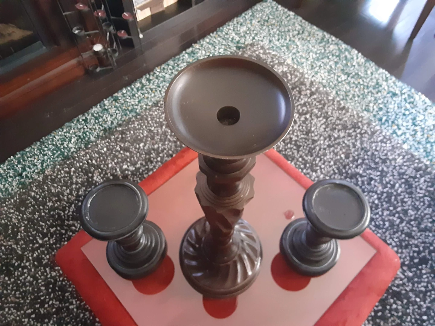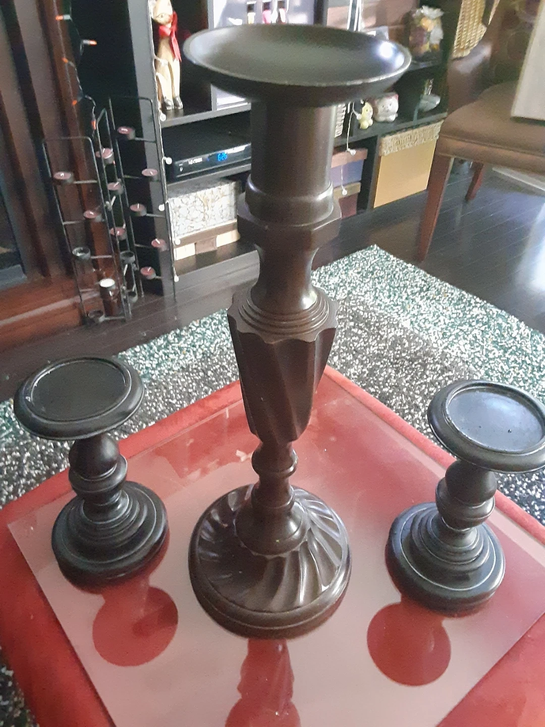 Selling a set of three candle holders. They add a touch of elegance to any room. Great for creating a cozy atmosphere!