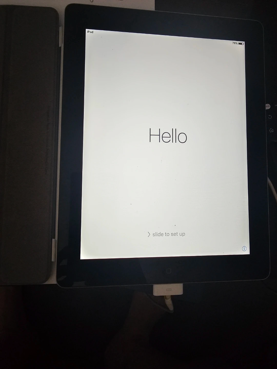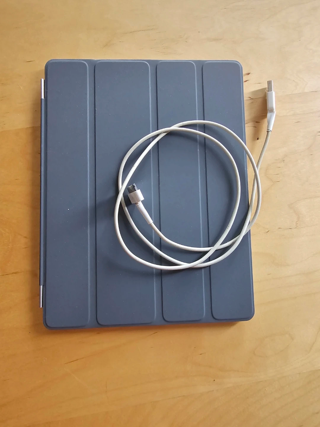 Apple iPad 2 (2nd Generation). Model A1395, IOS 9.3.5, 9.7 inch screen. Comes with magnetic cover that can fold up to stand the iPad up and also comes with charging cable. Silver back.