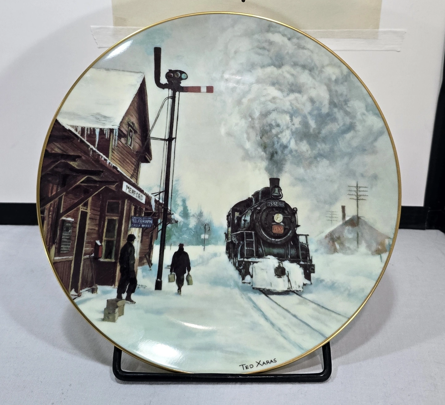 This collector plate is part of the 'Steam on the CNR' series, created in the late 1980s to commemorate the Canadian National Railway's steam locomotive era. The series was produced by Christian Bell Porcelain and featured artwork by Theodore Xaras, depicting nostalgic winter railway scenes from Canada's transportation heritage.
