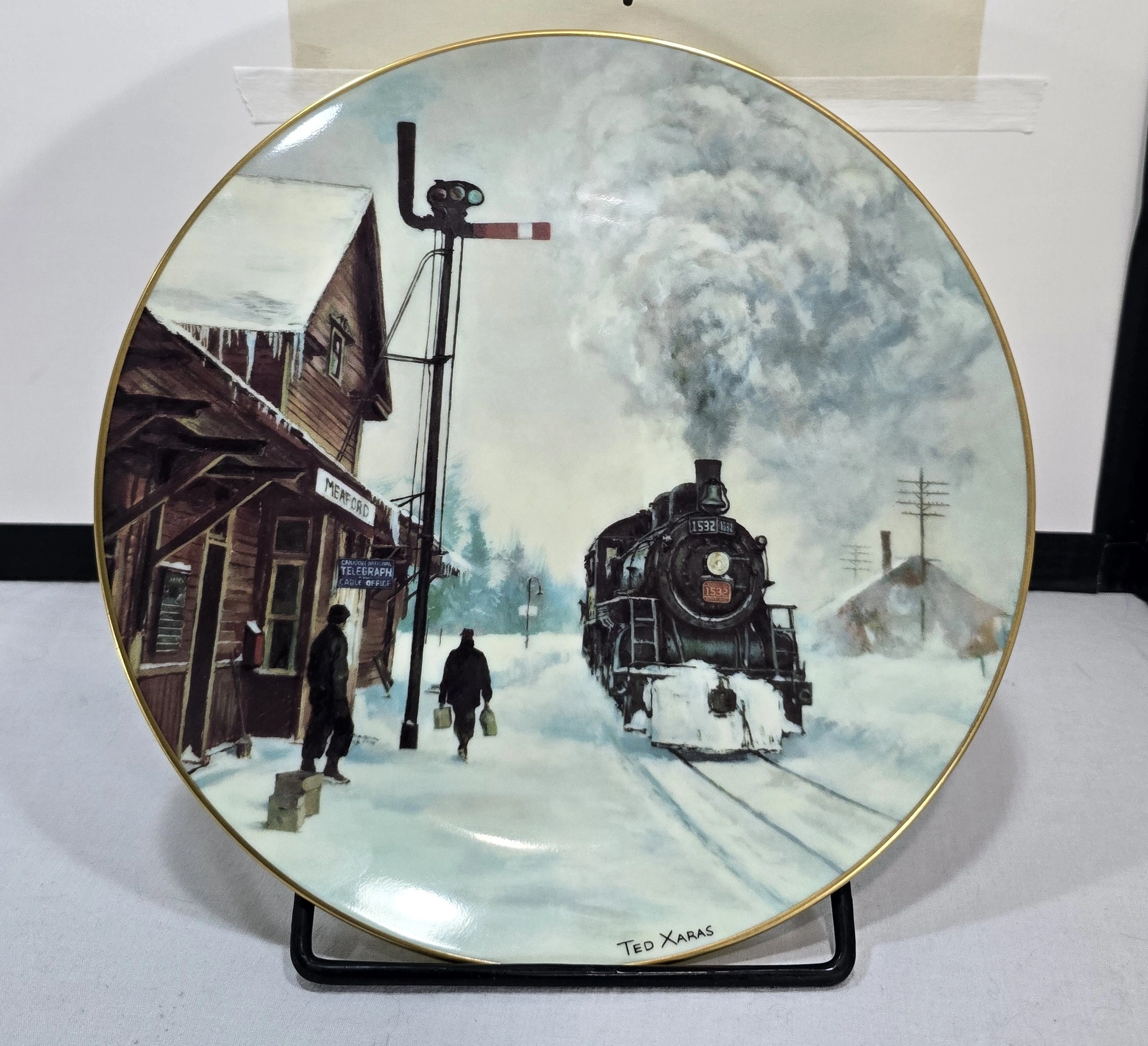 This collector plate is part of the 'Steam on the CNR' series, created in the late 1980s to commemorate the Canadian National Railway's steam locomotive era. The series was produced by Christian Bell Porcelain and featured artwork by Theodore Xaras, depicting nostalgic winter railway scenes from Canada's transportation heritage.
