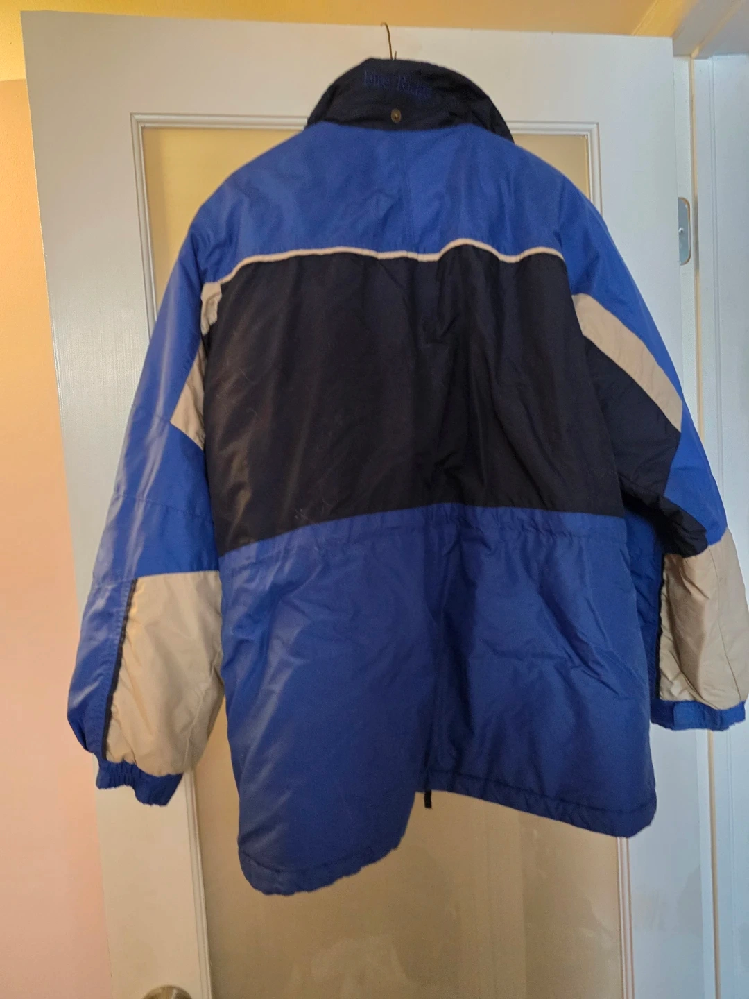 Columbia Fire Ridge jacket in size 18/20. It's a stylish and functional jacket. There is a small barely noticeable stain on the sleeve. Kids size 18 - 20 but fits adult size medium to large. Vintage colors n style .