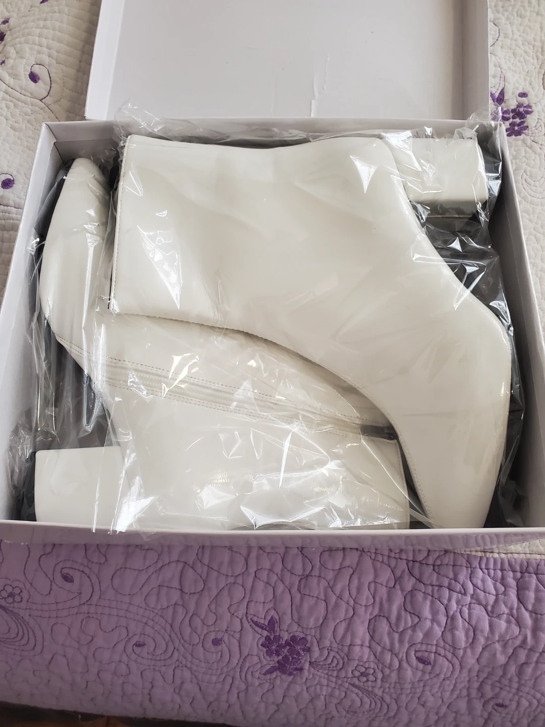 Brand new white ankle boots from SHE & IN. These stylish boots are made of synthetic material and come in size EUR 39. They're perfect for adding a chic touch to any outfit! Has a zipper you can easily slip on and off. Never worn.