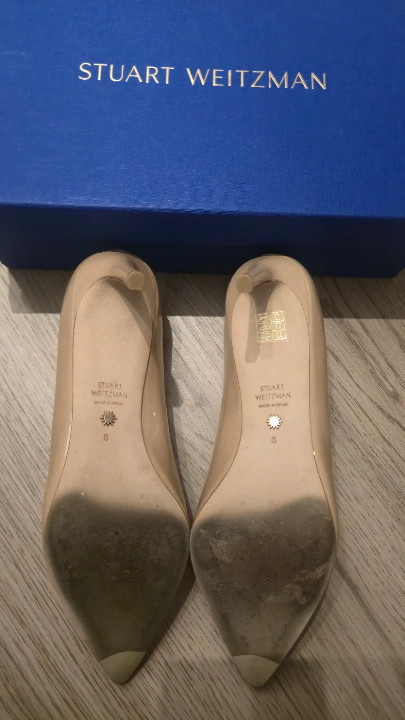 Selling a pair of Stuart Weitzman nude heels in. They are a size 8. The original box is included. Originally bought for $490. Only worn few times.