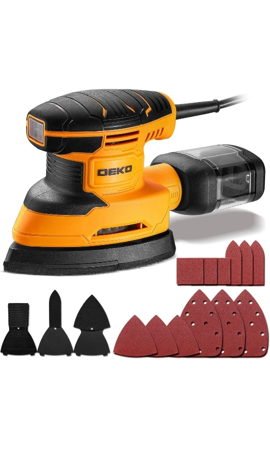 Corded Palm Sanders with Dust Collector, 3 Additional Attachments &12pc Sandpapers for Sanding, Polishing, Removing Paint in Home