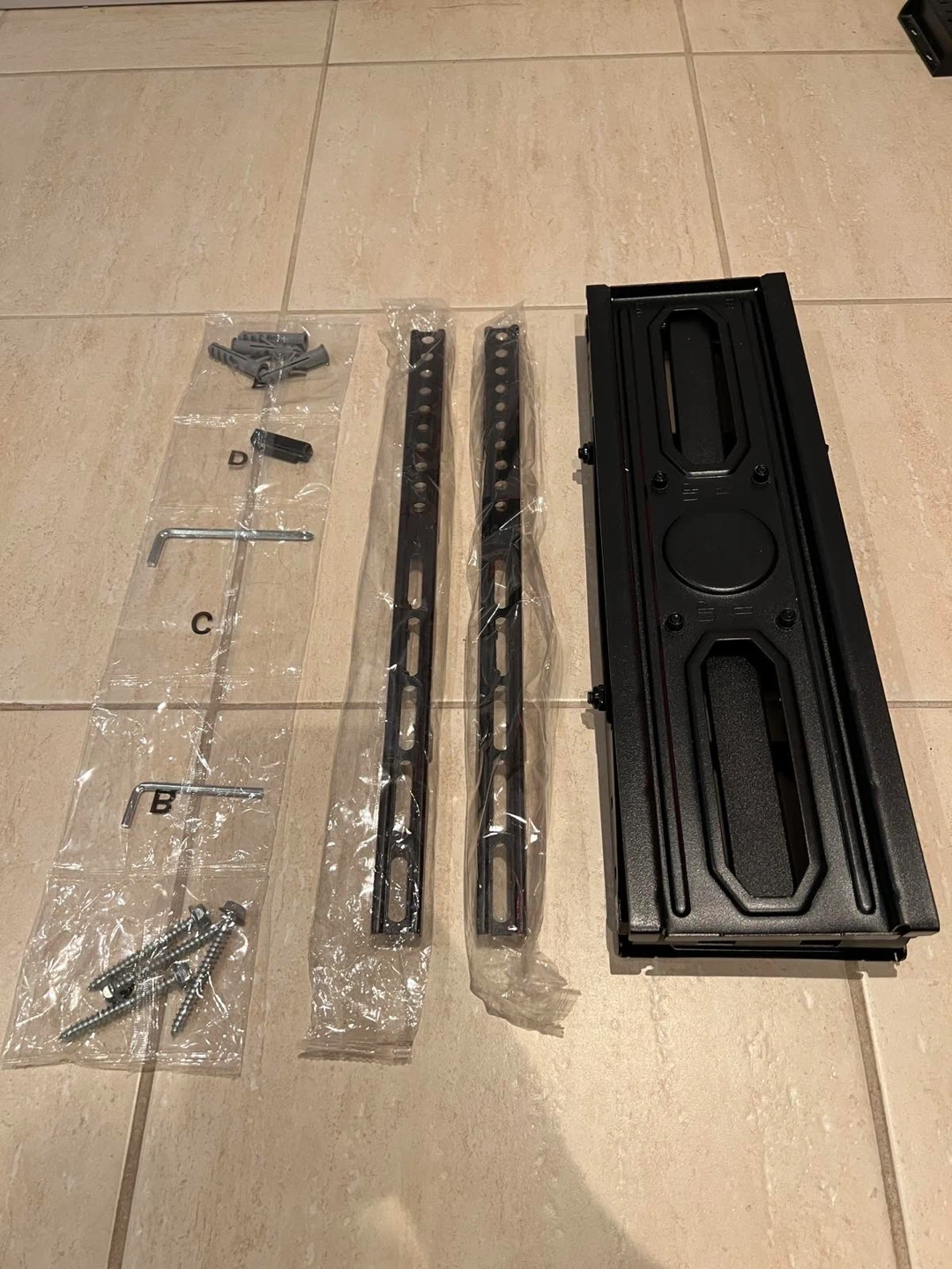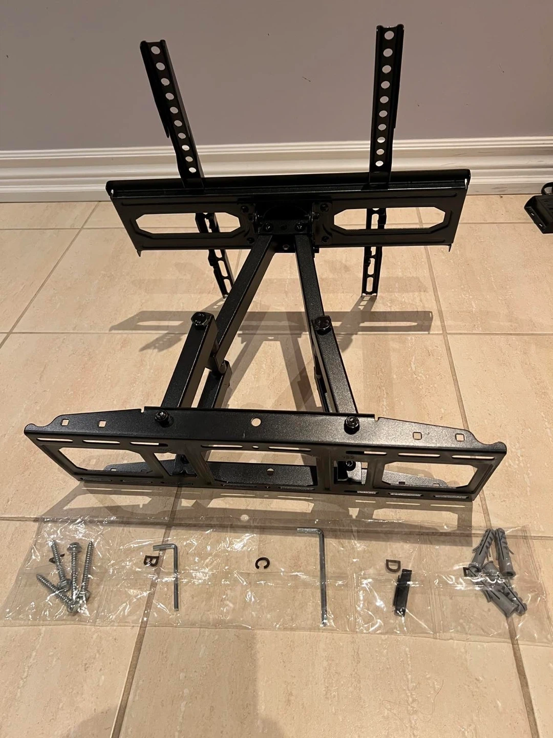 This black TV wall mount offers swivel and tilt functionality. It's made of durable metal construction. Comes with necessary hardware for installation.