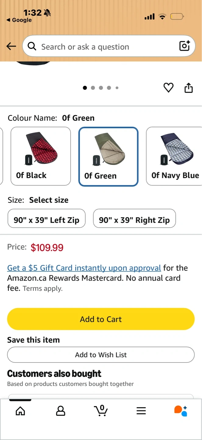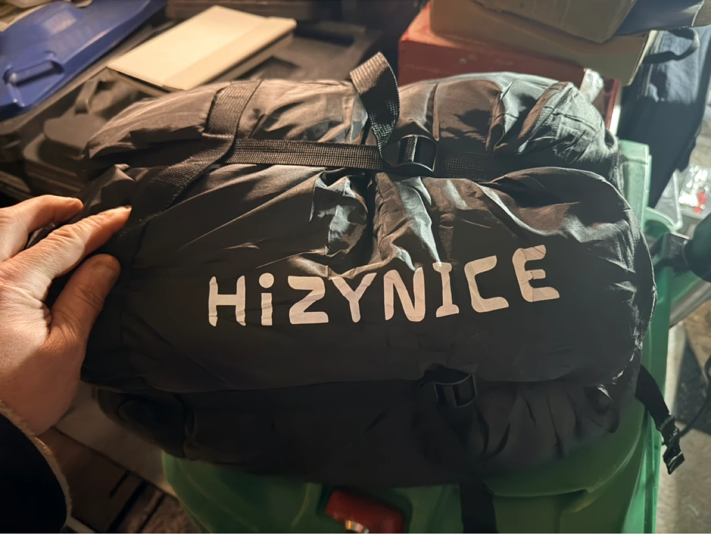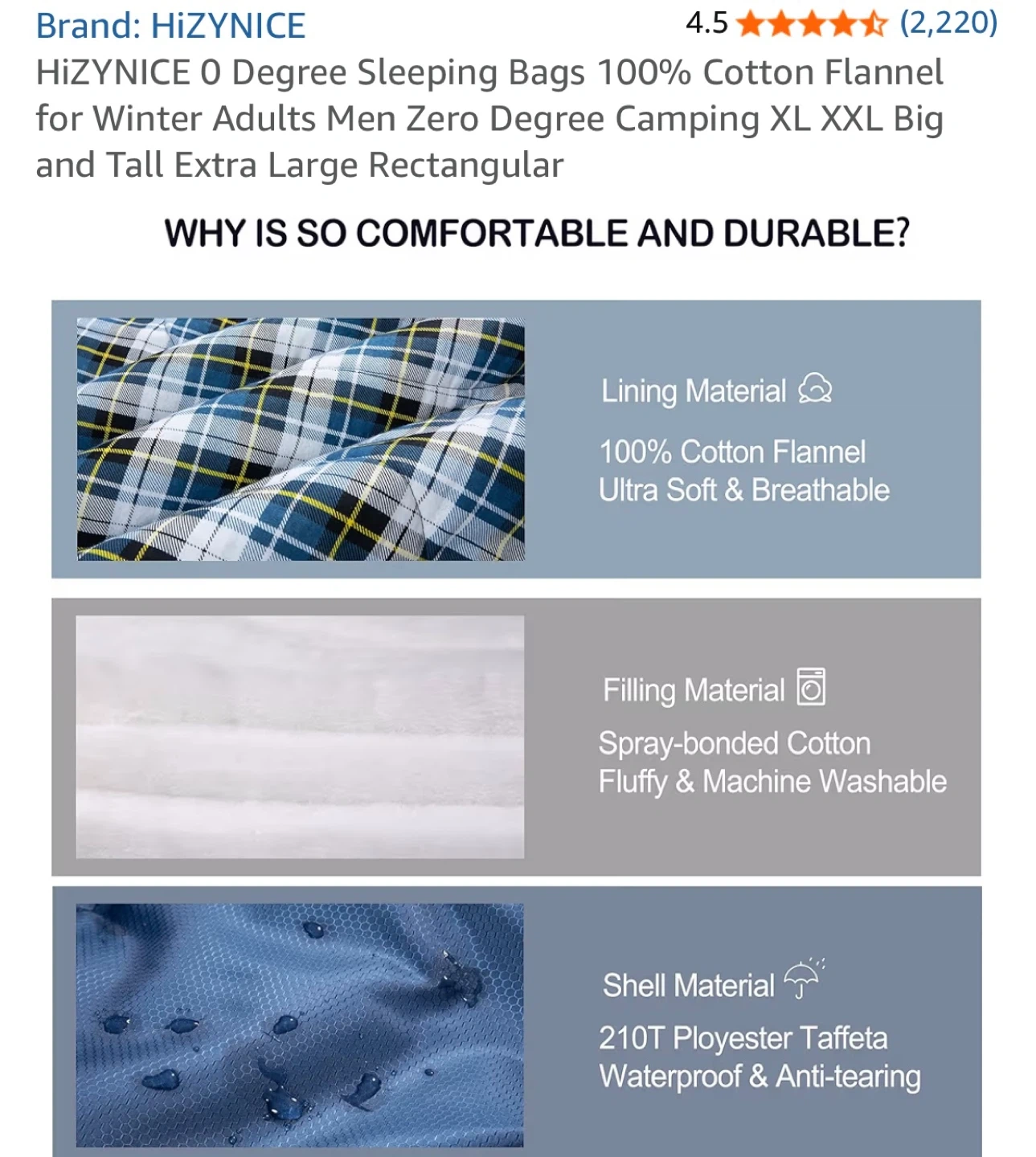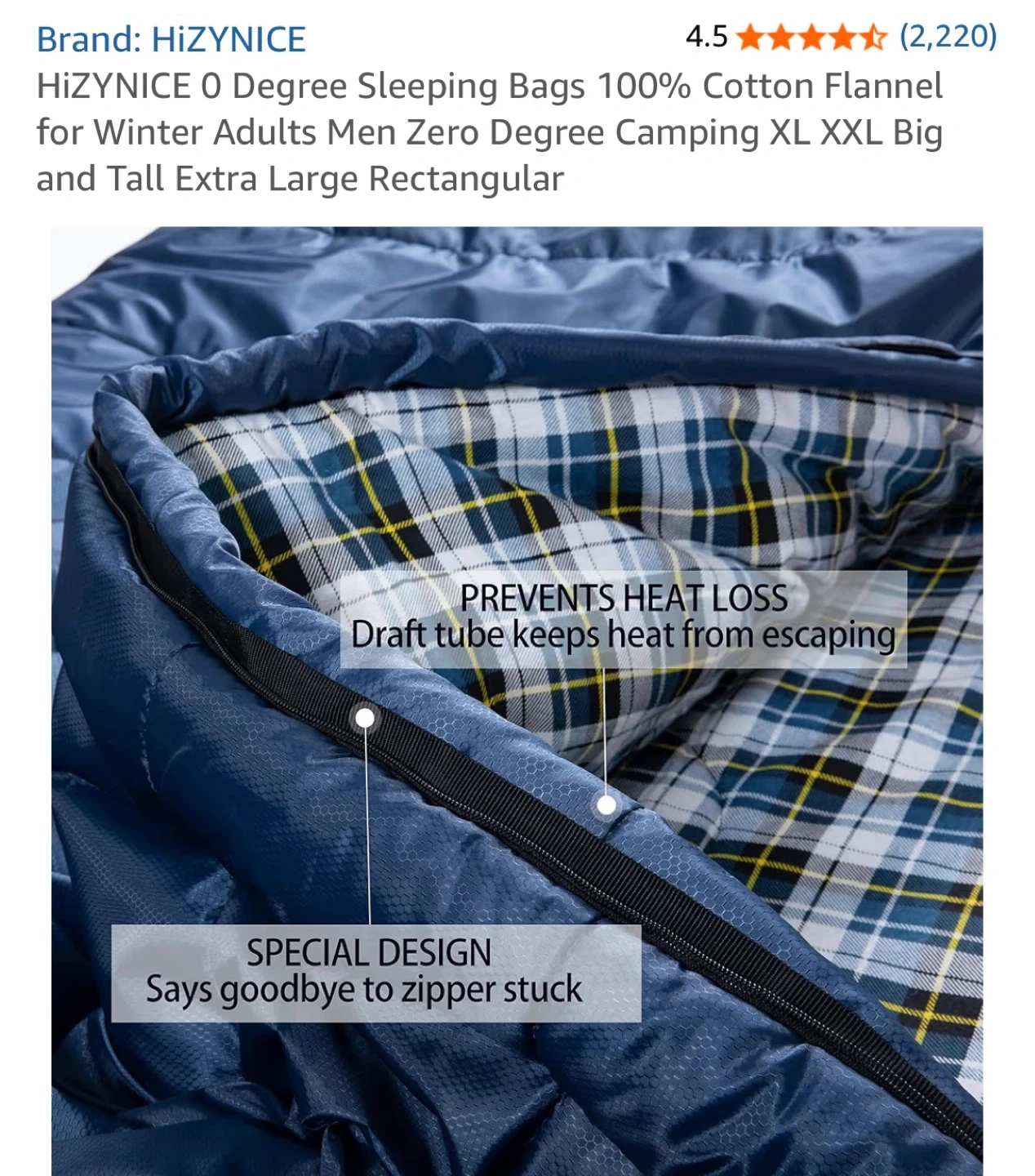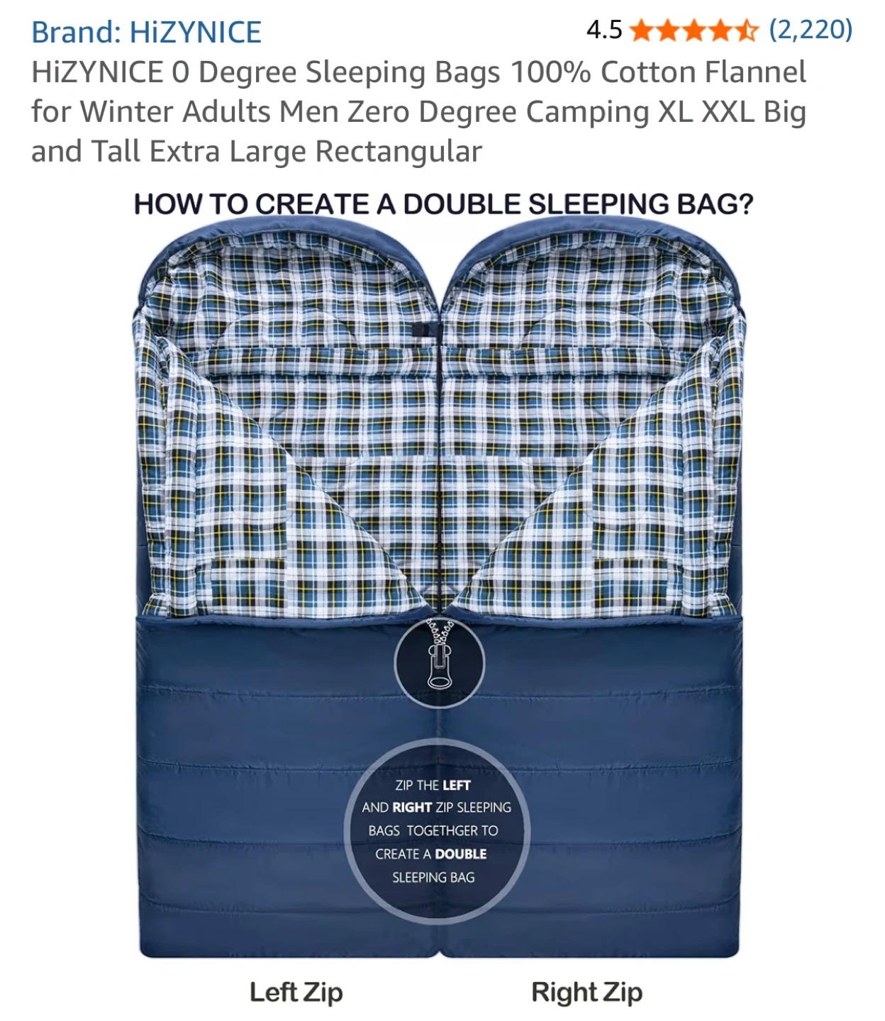This HizyNice Olive sleeping bag is rated for 0 degrees Fahrenheit. It's made with 100% cotton flannel lining and measures 90" x 39". It includes a compression sack.