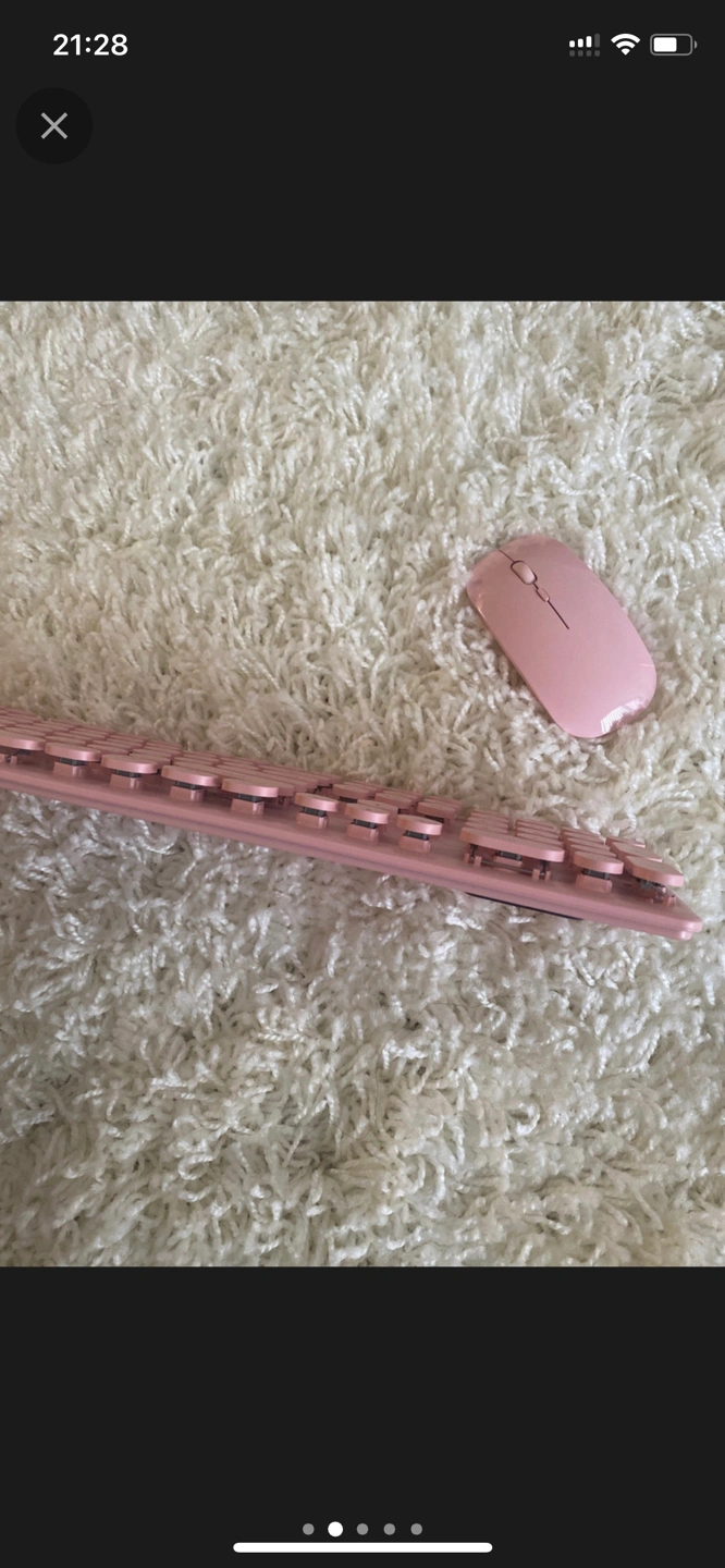 100% new. Wireless Bluetooth connect computer keyborad and mouse in macaroon pink