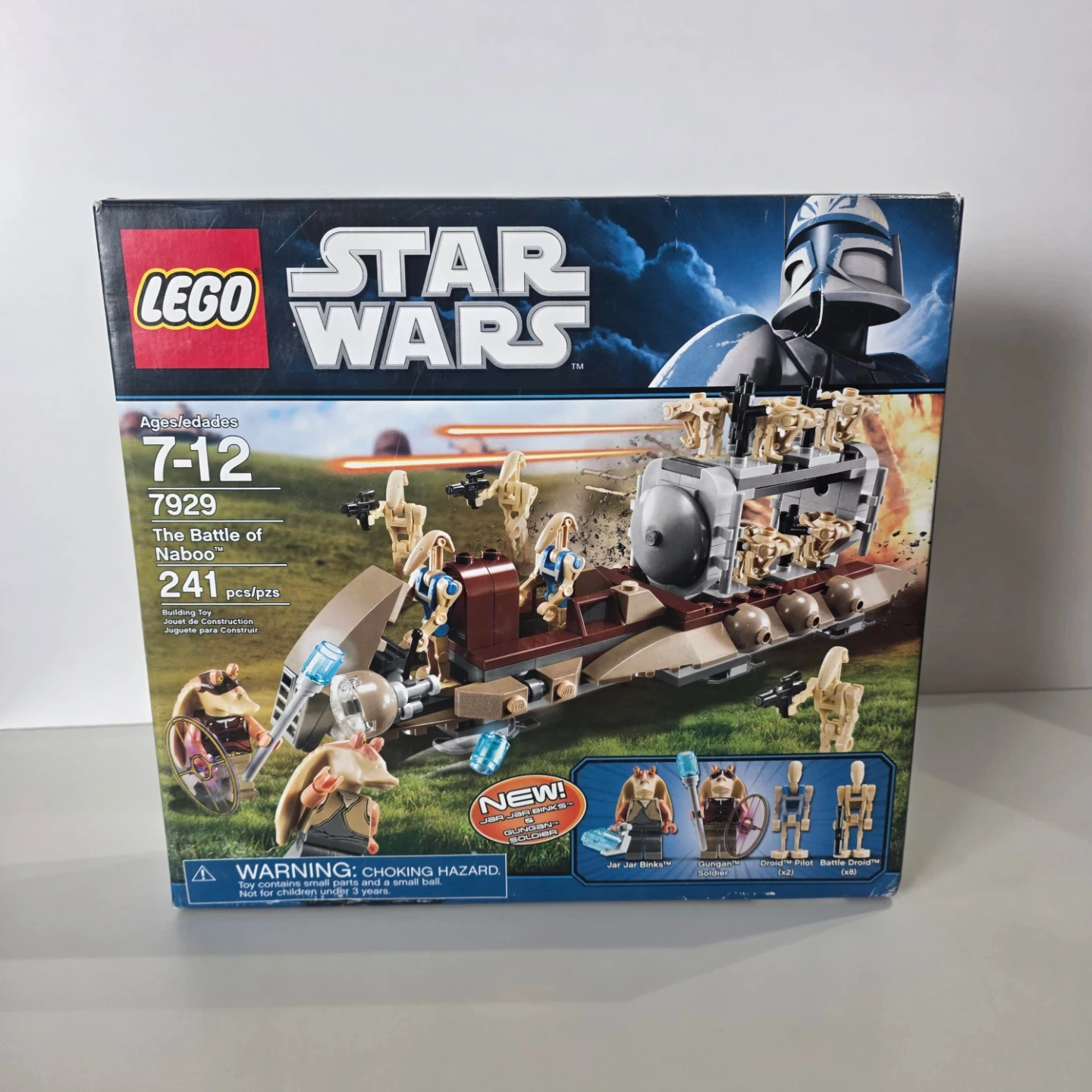 This LEGO set is the 7929 The Battle of Naboo from the Star Wars line. It includes 241 pieces. Build Jar Jar Binks, a Gungan Soldier, and Battle Droids for an epic Star Wars scene!