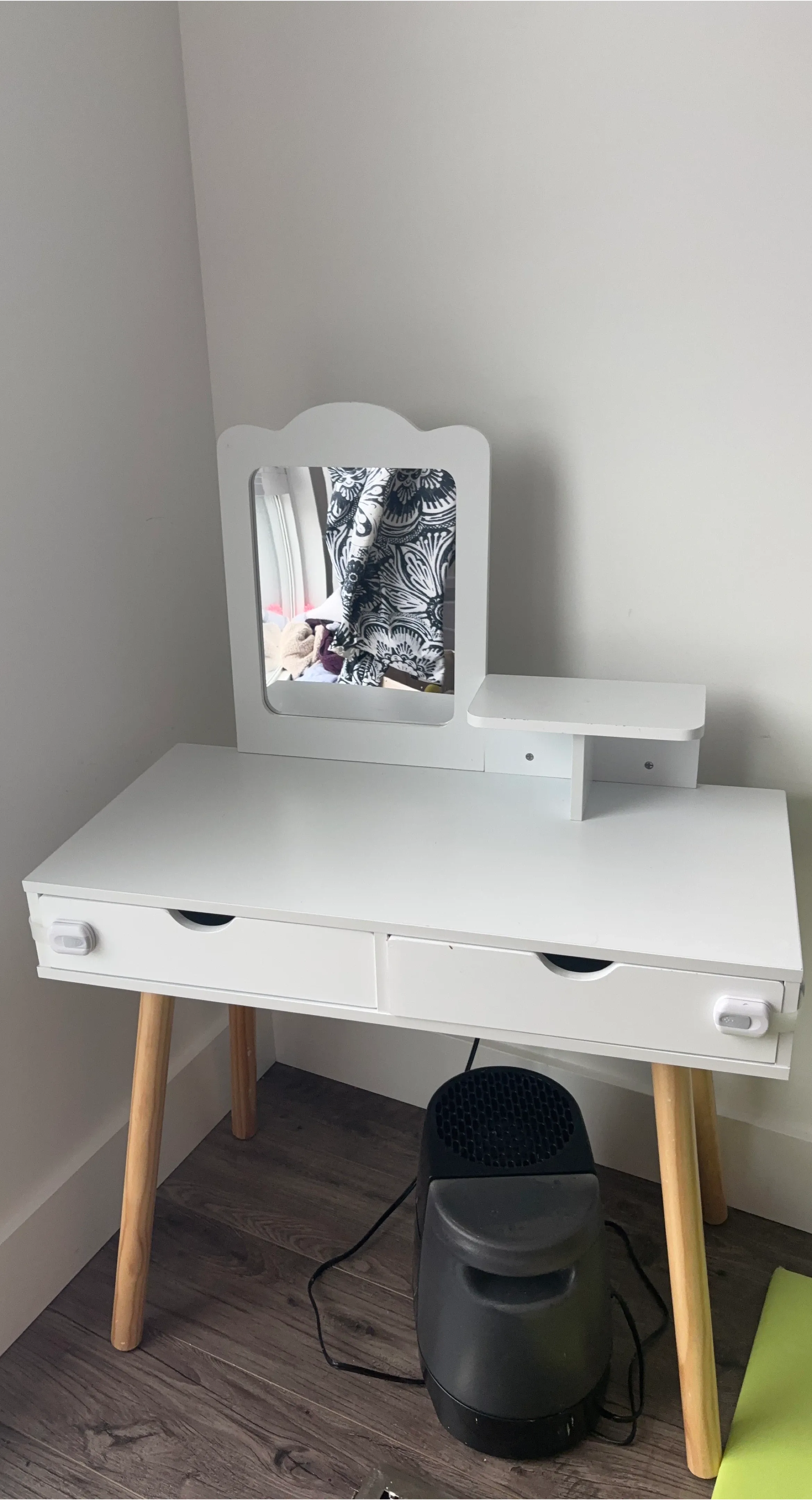 Glass top desk with white frame
