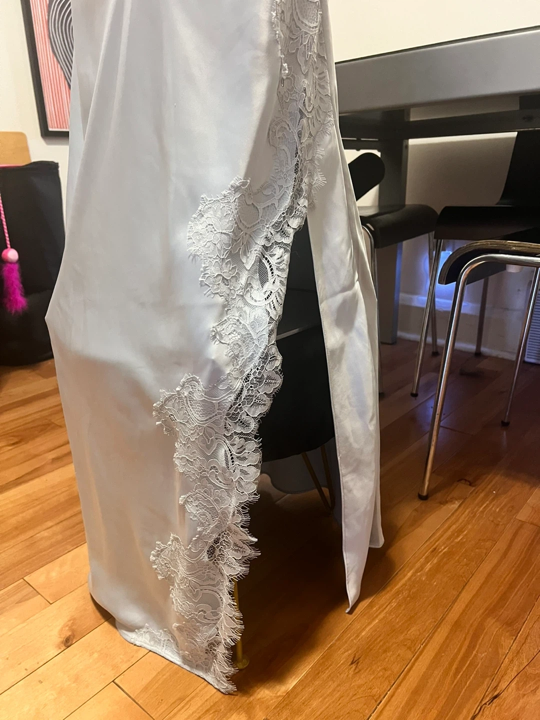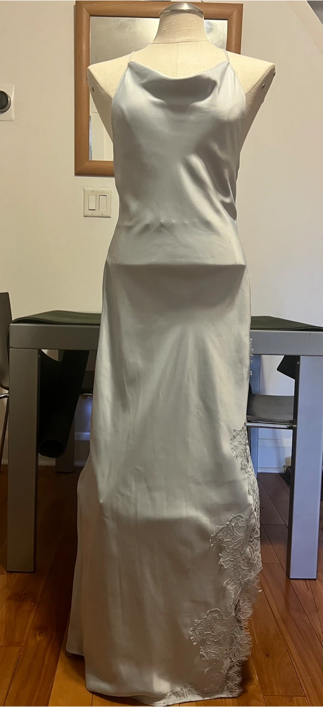 Selling an Oak + Fort dress in size small! The dress is a beautiful grey dawn colour. It features delicate lace detailing on the side. Originally bought for $88!