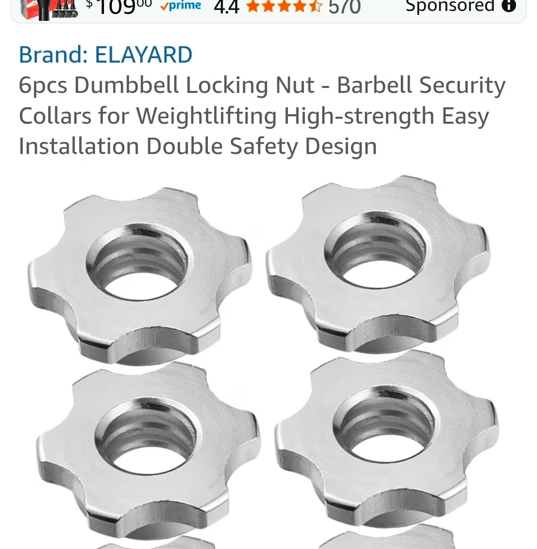 80Selling a set of 4 ELAYARD dumbbell locking nuts! These barbell security collars are designed for weightlifting and feature a high-strength, easy installation with a double safety design. They're in great condition and ready to help you secure your weights.