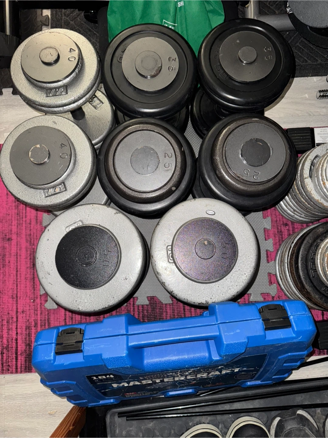 104Selling a complete set of dumbbells. Weights range from 10 to 50 lbs. 2x10lbs 2x15lbs 2x20lbs 2x25lbs 2x30lbs 2x35lbs 2x40lbs SOLD 2x50lbs SOLD Pick up at Whitehorn Ne