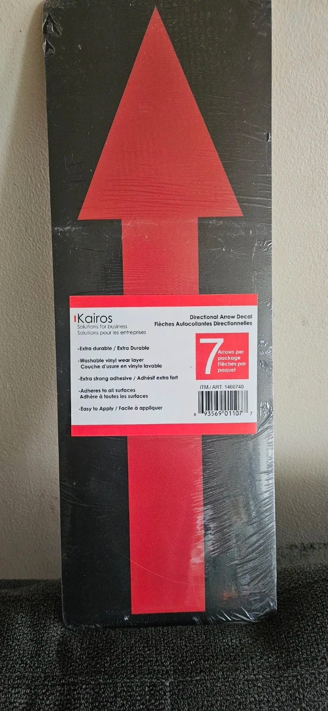 This package contains 7 directional arrow decals. They're extra durable with a washable vinyl wear layer. The decals feature extra strong adhesive and adhere to all surfaces. They're easy to apply!