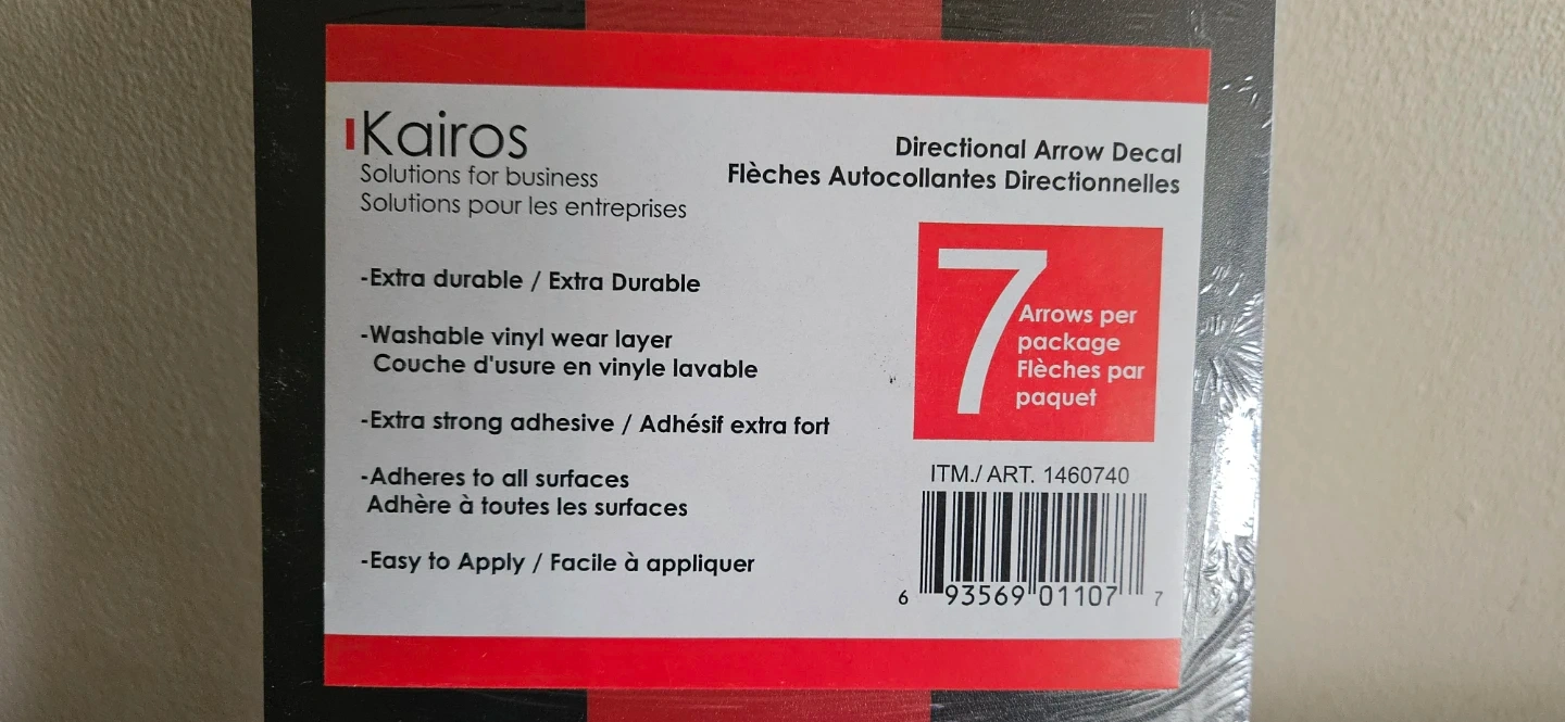 This package contains 7 directional arrow decals. They're extra durable with a washable vinyl wear layer. The decals feature extra strong adhesive and adhere to all surfaces. They're easy to apply!