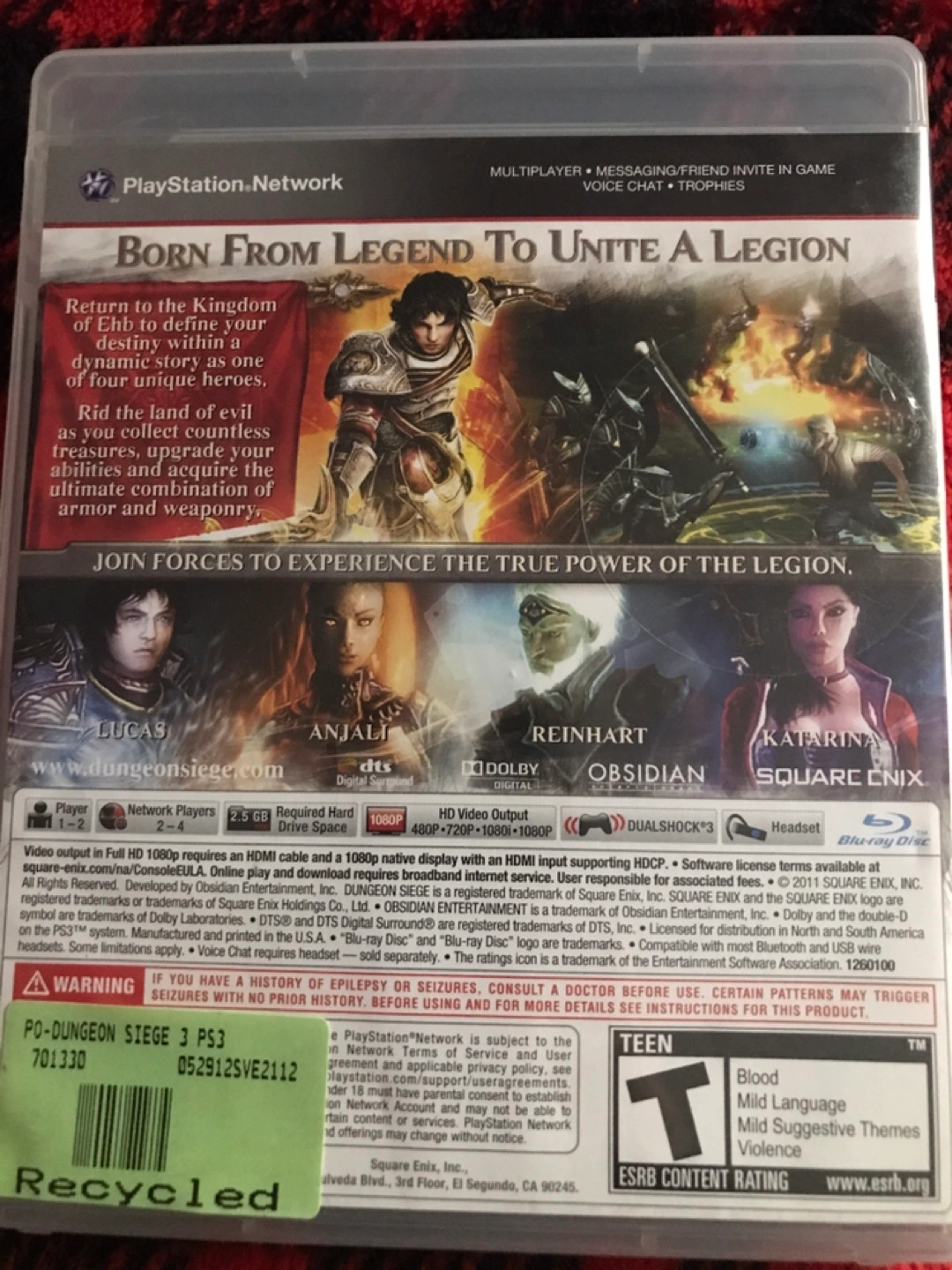 Selling a used copy of Dungeon Siege III for the PlayStation 3. Rated Teen by the ESRB. Enjoy this action RPG!
