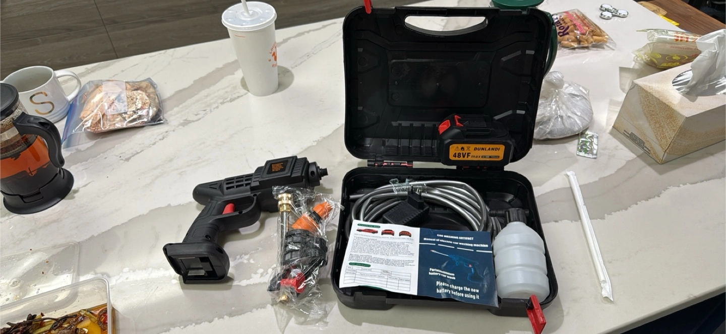 Selling a Dunlandi 48VF MAX cordless pressure washer! It comes with the case and all the attachments you see in the photos. Perfect for washing your car or other outdoor cleaning tasks