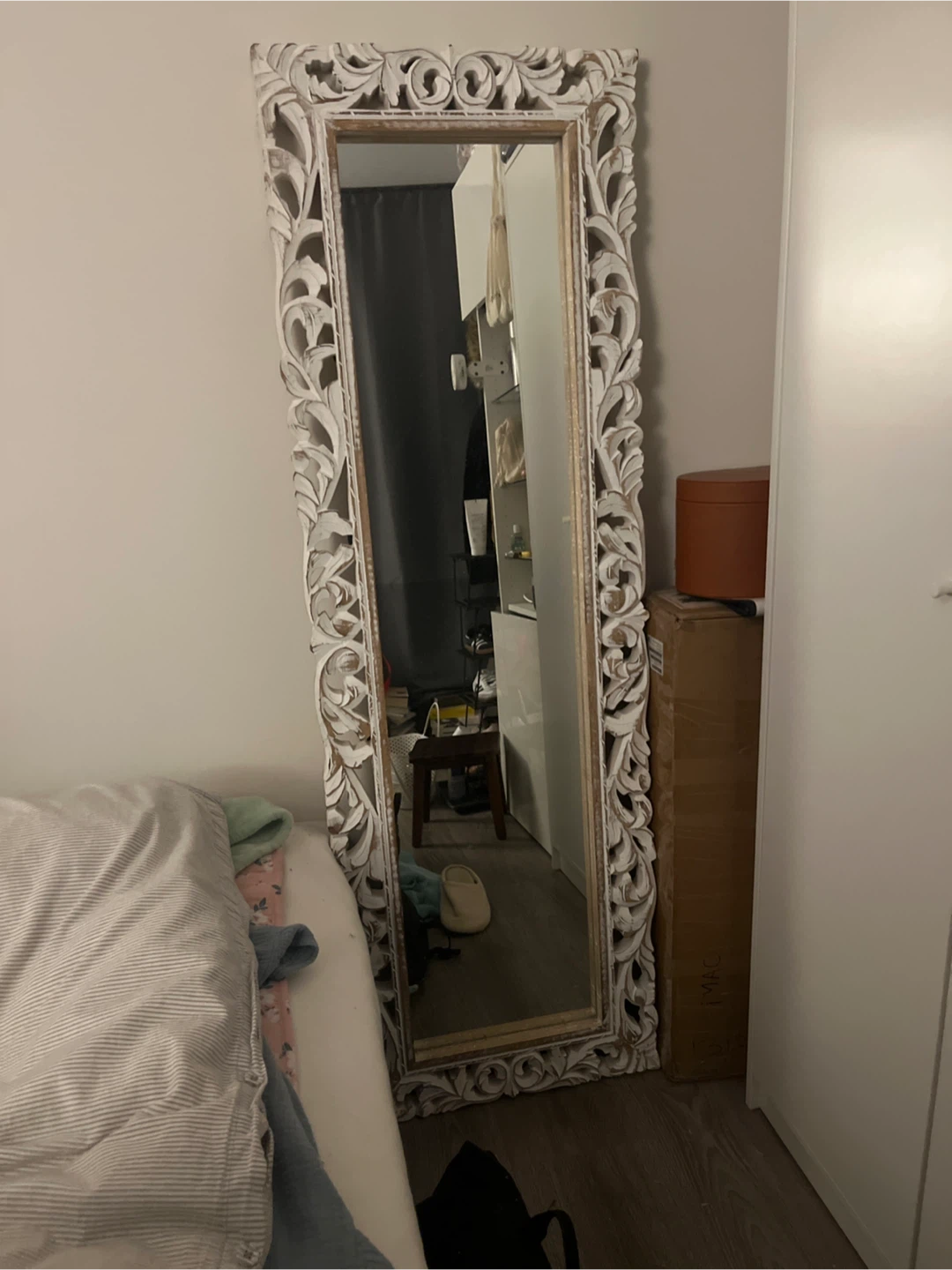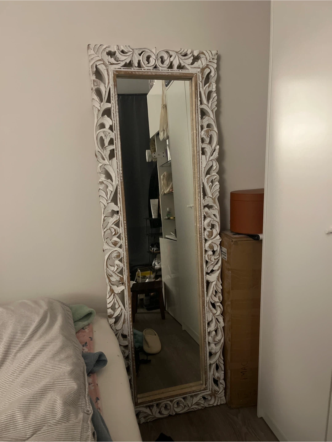 Selling a lovely full-length mirror with a beautiful ornate wooden frame! It's in great condition (new) and would look great in any room. Made in India. I bought this from the interior shop in Kitchener.