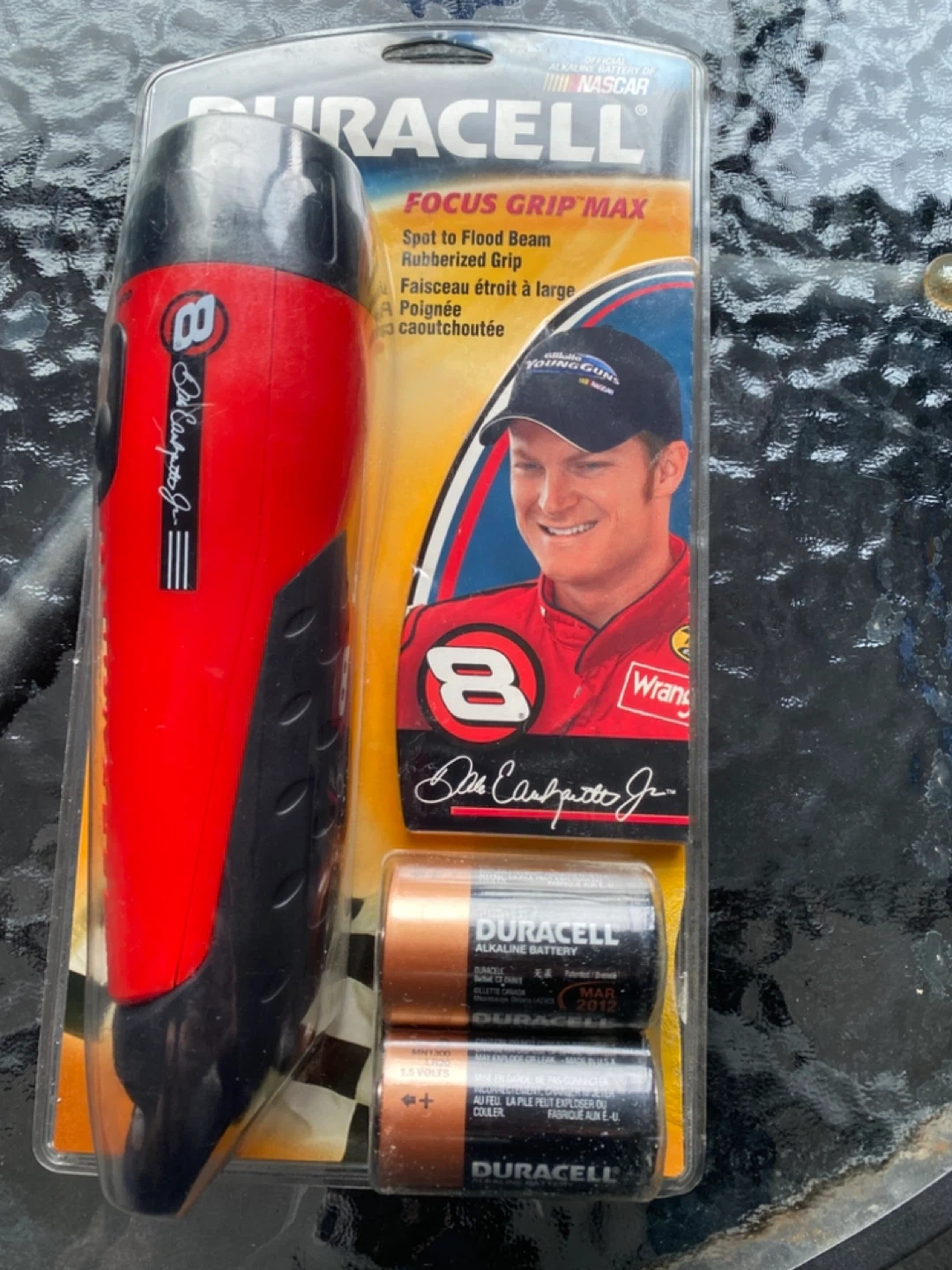 10Selling a Duracell Focus Grip Max flashlight featuring Dale Earnhardt Jr. design! It has a spot to flood beam and a rubberized grip. Comes with Duracell alkaline batteries. The packaging is included!