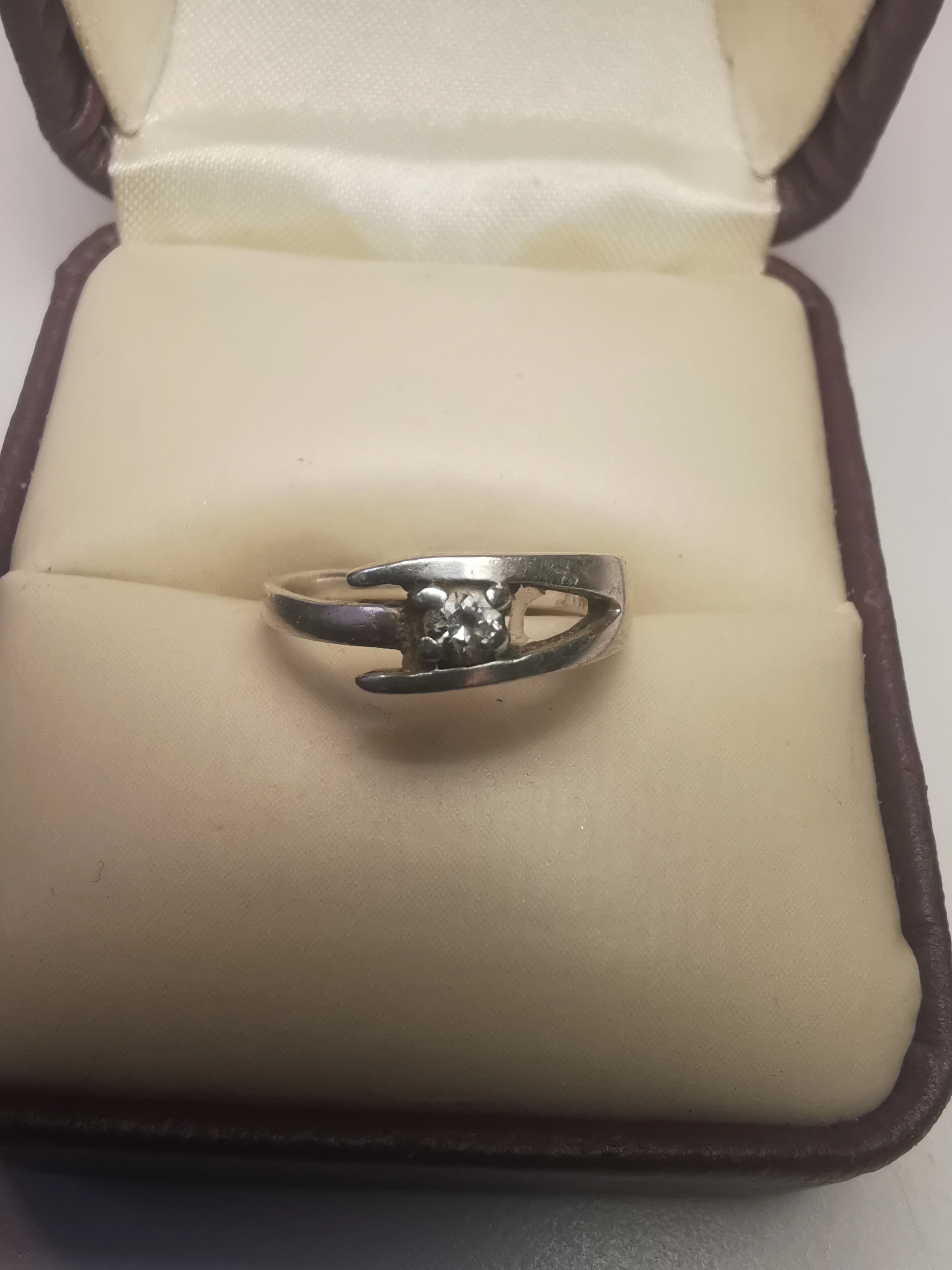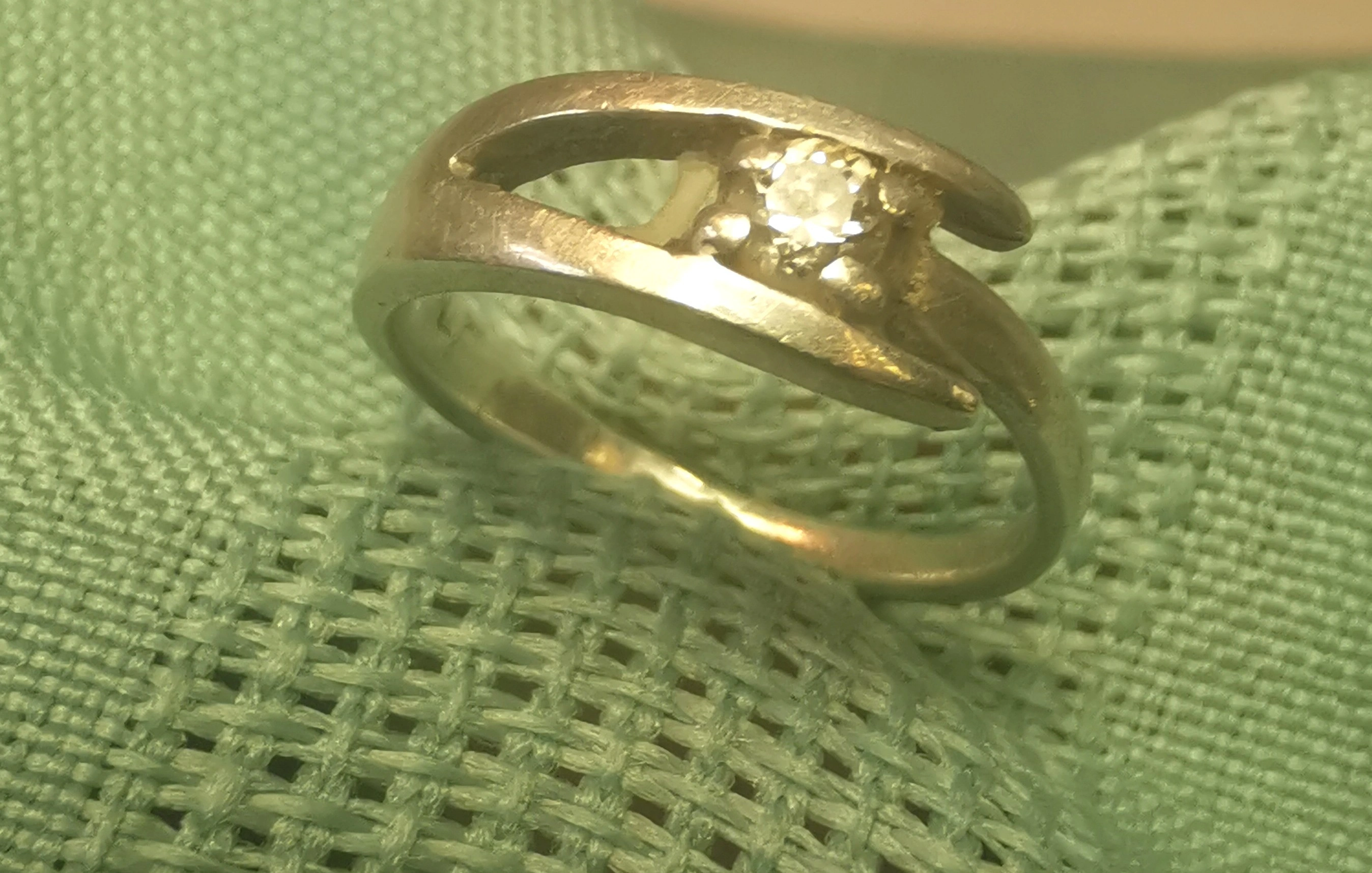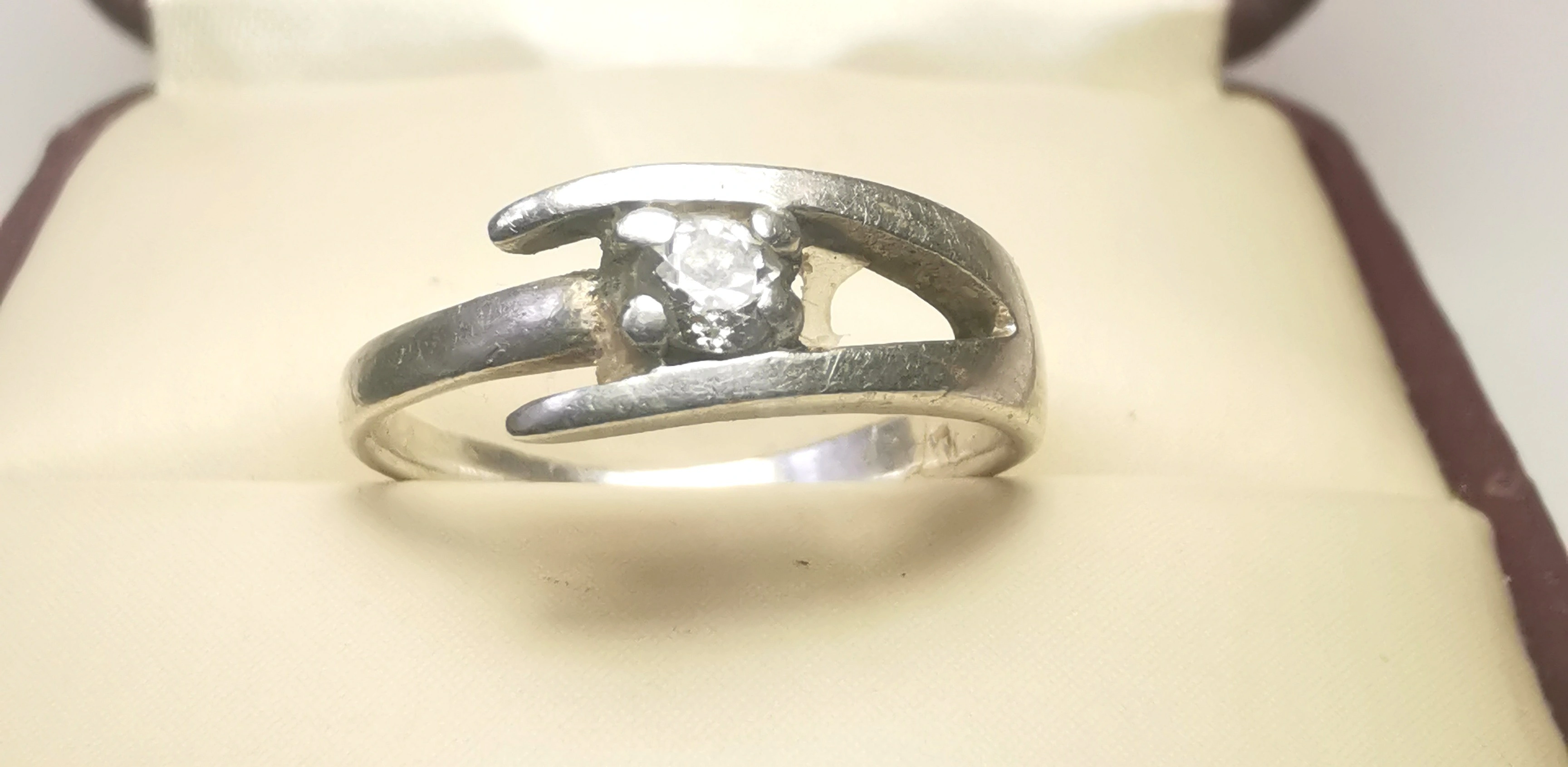 Italy 925 Sterling Silver Bypass Ring Size 4 Clear Solitaire