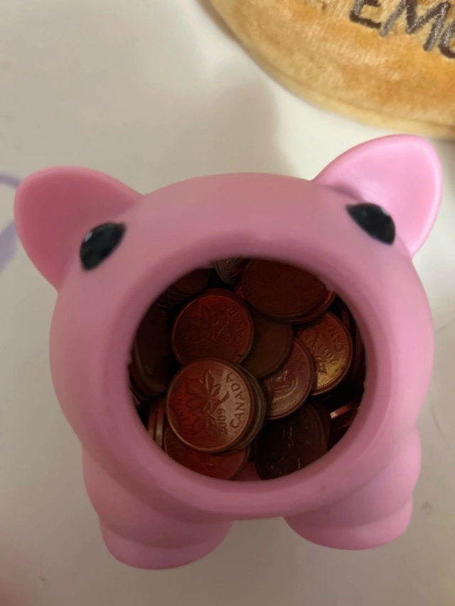 Mini piggy bank full of penny’s