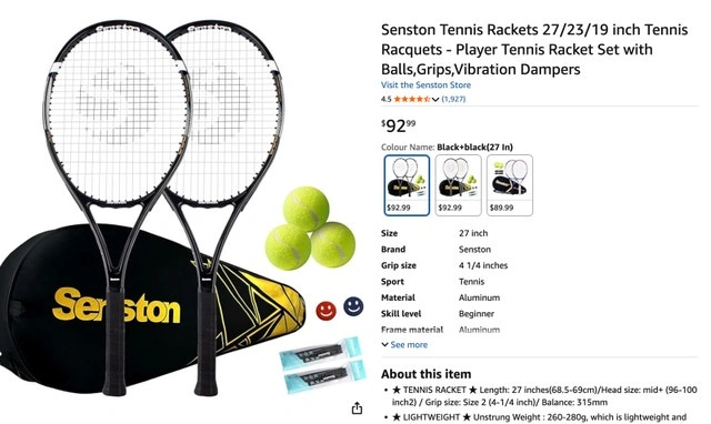 PACKAGE INCLUDES- 2x tennis racket, with 1x quality protective carry case, 2x overgrip(random color), 2x vibration damper(random color).