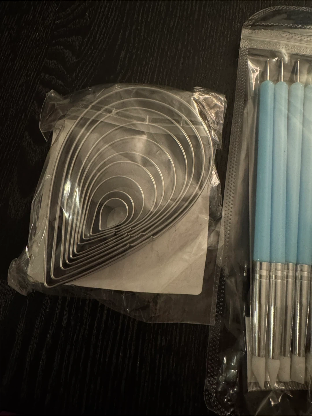This Wilton cake decorating set includes a fondant roller and various sculpting tools. The fondant roller measures 9 inches (23 cm) in length. It also comes with rose petal cutters and dotting tools. Great for all your baking and decorating needs!