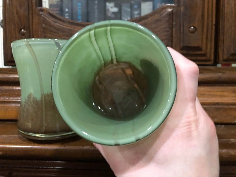 The colour is more of a jade green in person, and then it blends with that earthy brown. They’re heavier than expected each time I lift them, so I’d say they definitely have some weight to them.