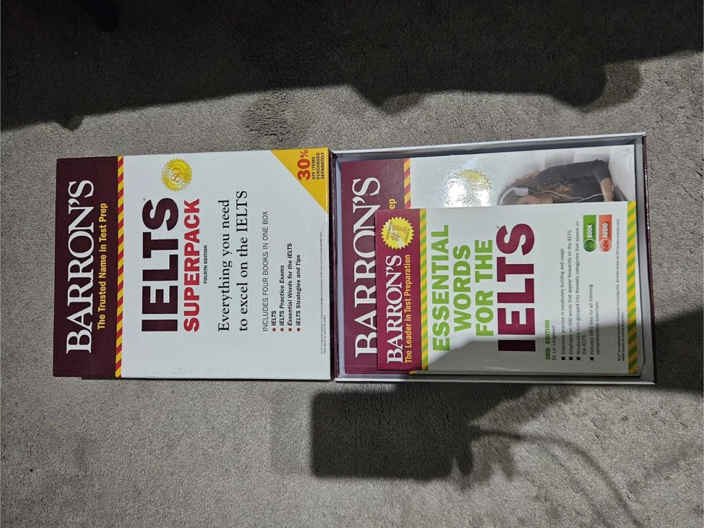 Selling Barron's IELTS Superpack, Fourth Edition. This pack includes four books in one box to help you excel on the IELTS exam. It includes IELTS, IELTS Practice Exams, Essential Words for the IELTS, and IELTS Strategies and Tips