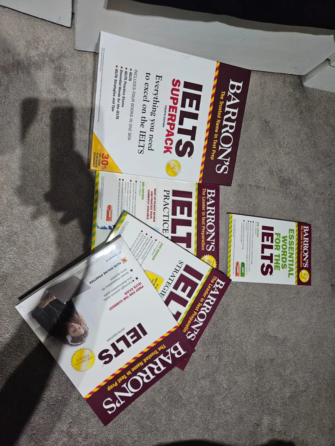 Selling Barron's IELTS Superpack, Fourth Edition. This pack includes four books in one box to help you excel on the IELTS exam. It includes IELTS, IELTS Practice Exams, Essential Words for the IELTS, and IELTS Strategies and Tips