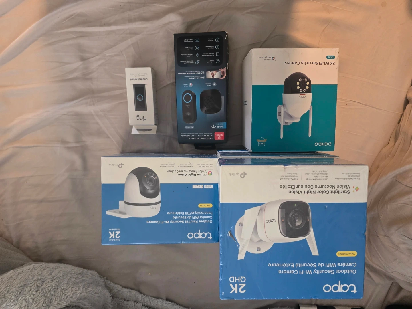 Includes a Ring Doorbell Wired and three kinds security cameras: TP-Link Tapo C510W and 3x C320WS models, plus a DEKCO 2K Wi-Fi camera. These cameras offer colour night vision and 2K resolution. The Tapo C510W is a pan/tilt model with IP66 weatherproofing and microSD storage. Open to reasonable offers willing to sell as a complete set or sell individual items..also I can come meet you
