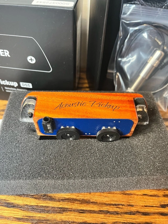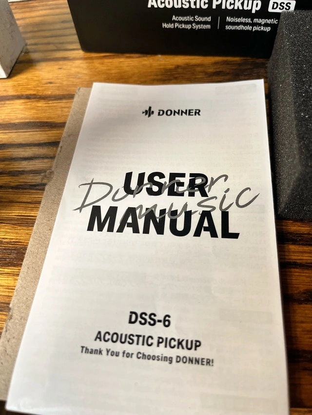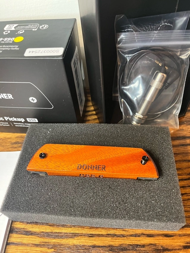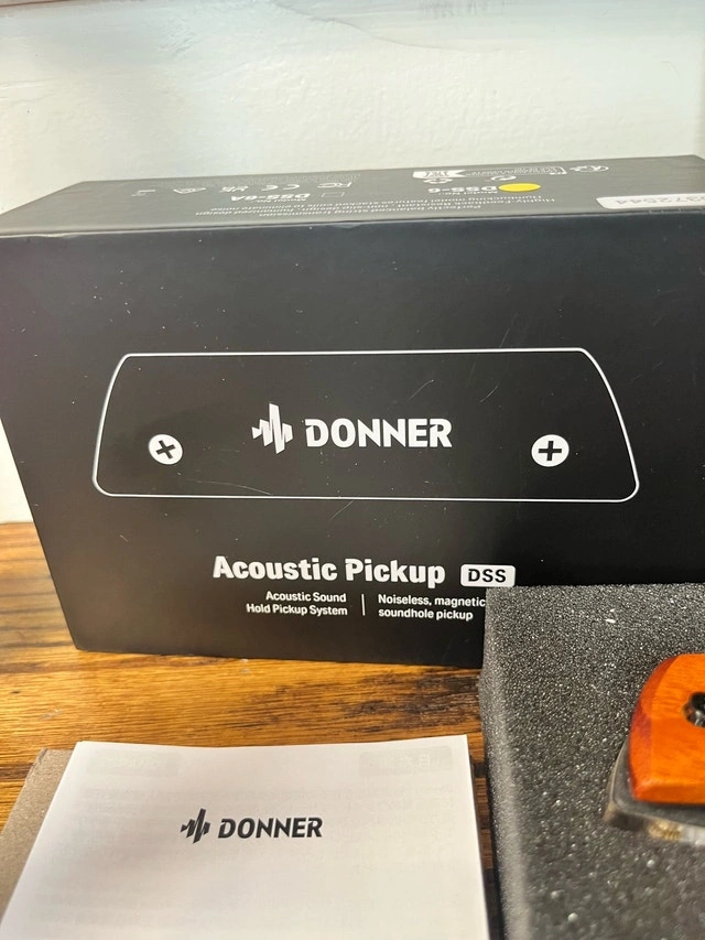 Amplify your acoustic guitar with the Donner DSS-6 Acoustic Pickup. This is a noiseless magnetic soundhole pickup system for clear, feedback-free sound. The unit is in excellent condition, barely used, and has a natural wood finish. Specifications: Type: Magnetic Soundhole Pickup, Model: DSS-6, Compatibility: Acoustic Guitars, Features: Noiseless, Easy Installation. Cash accepted.