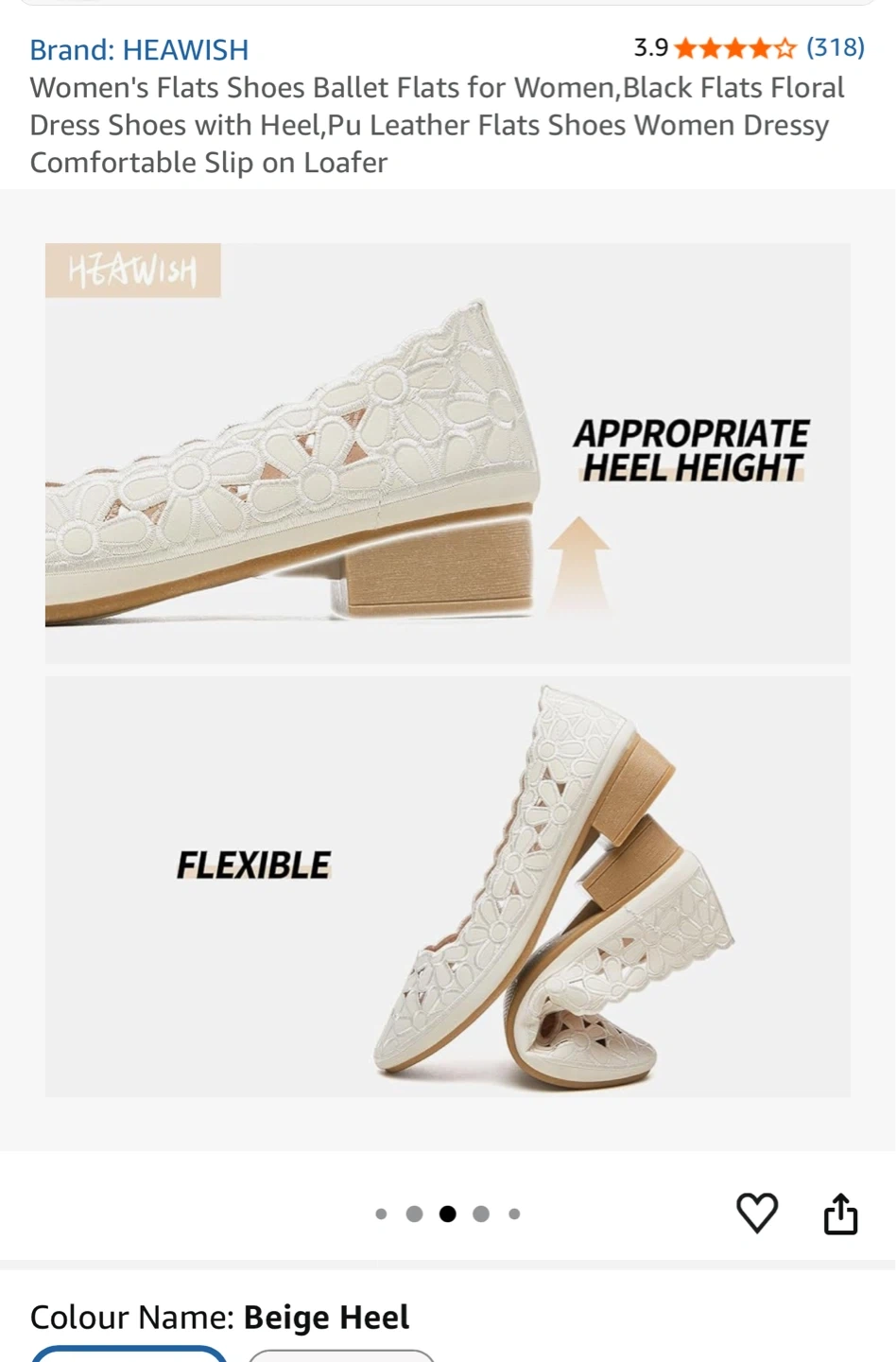 HEAWISH Women's Women’s Flats Shoes Ballet Flats for Women,Black Flats Floral Dress Shoes with Heel,Pu Leather Flats Shoes Women Dressy Comfortable Slip on Loafer,Beige