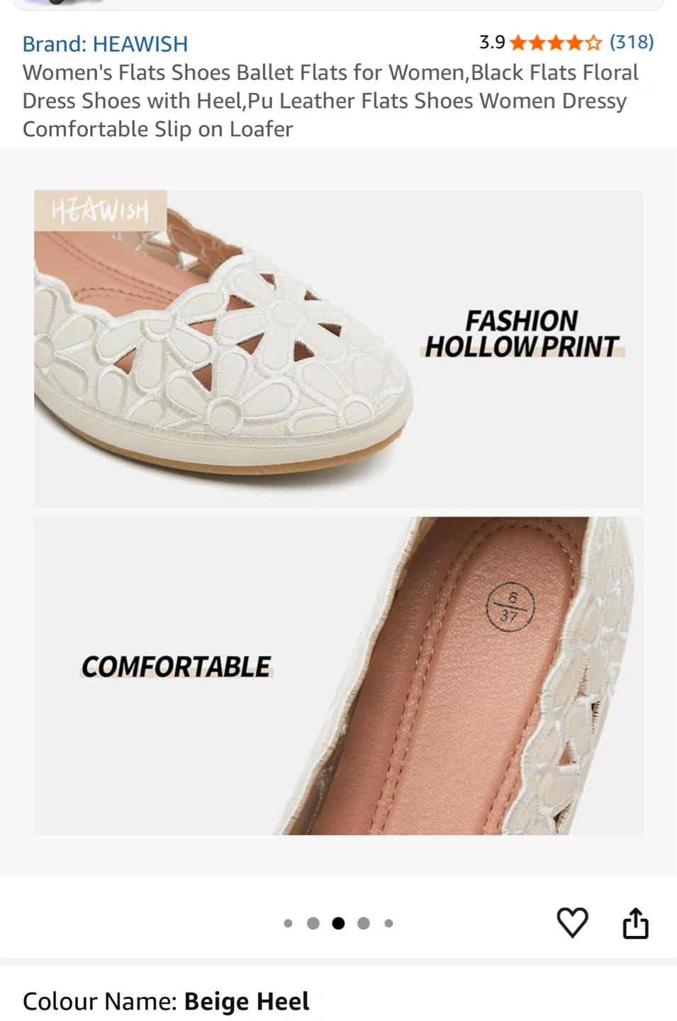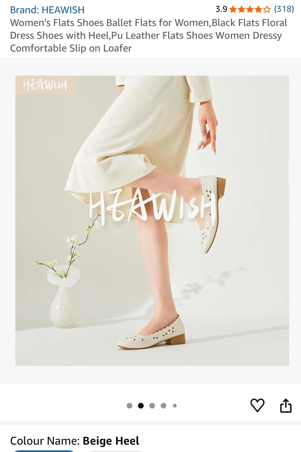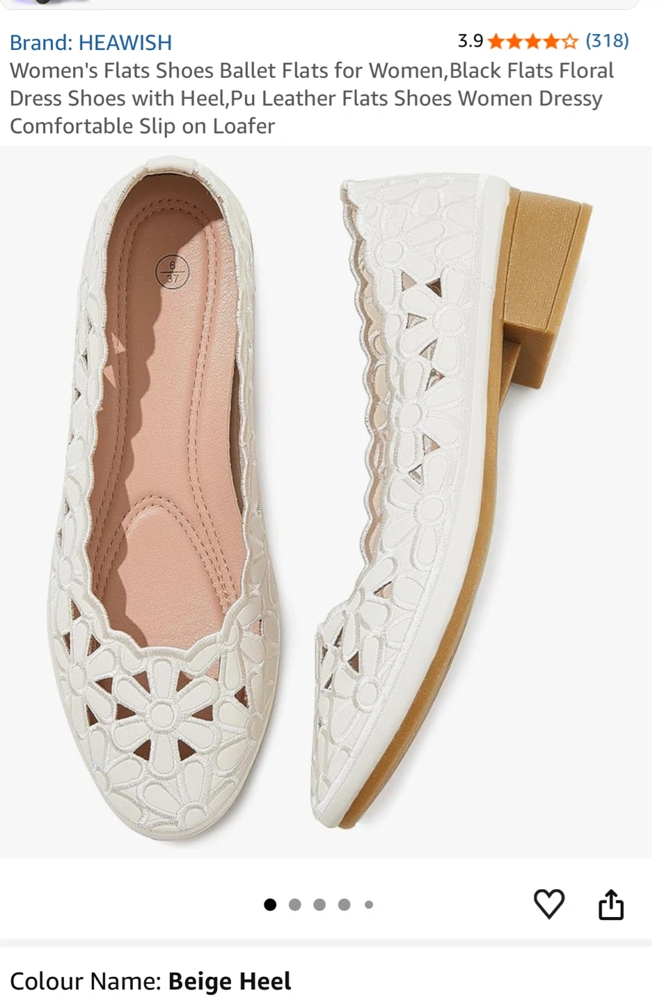HEAWISH Women's Women’s Flats Shoes Ballet Flats for Women,Black Flats Floral Dress Shoes with Heel,Pu Leather Flats Shoes Women Dressy Comfortable Slip on Loafer,Beige