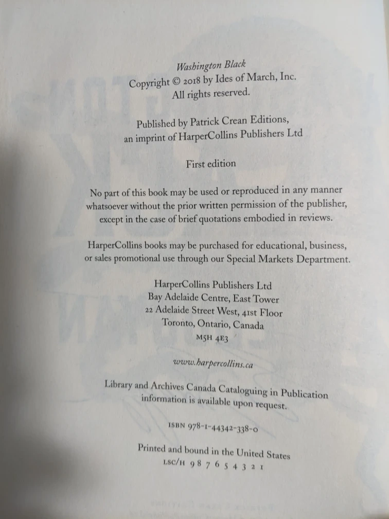 Selling a copy of Washington Black by Esi Edugyan! It's a novel published by Patrick Crean Editions, an imprint of HarperCollins Publishers