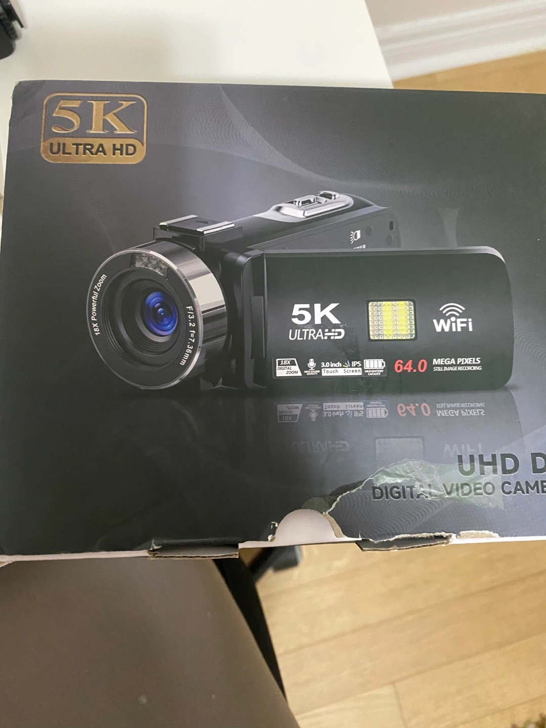 115Selling a DV Cam 5K Ultra HD digital video camera. It comes with its original box. It features 5K Ultra HD recording and WiFi connectivity.