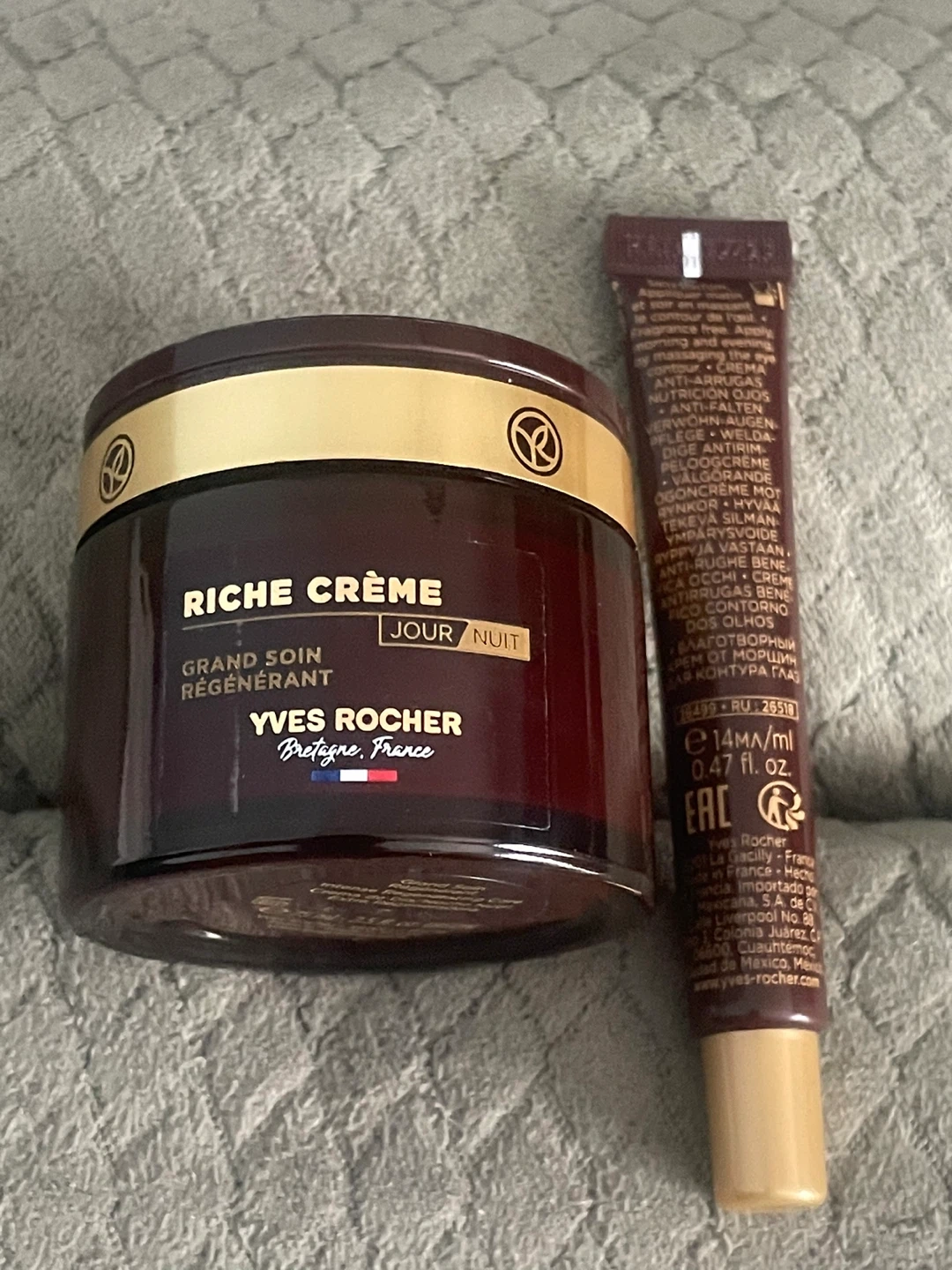 This Yves Rocher Riche Crème set includes the Intense Regenerating Care Day & Night cream (75 ml) and an Anti-Wrinkle Eye Cream (14 ml).