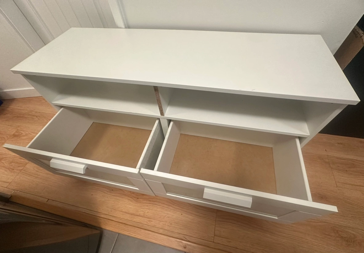 White TV Stand with Drawers