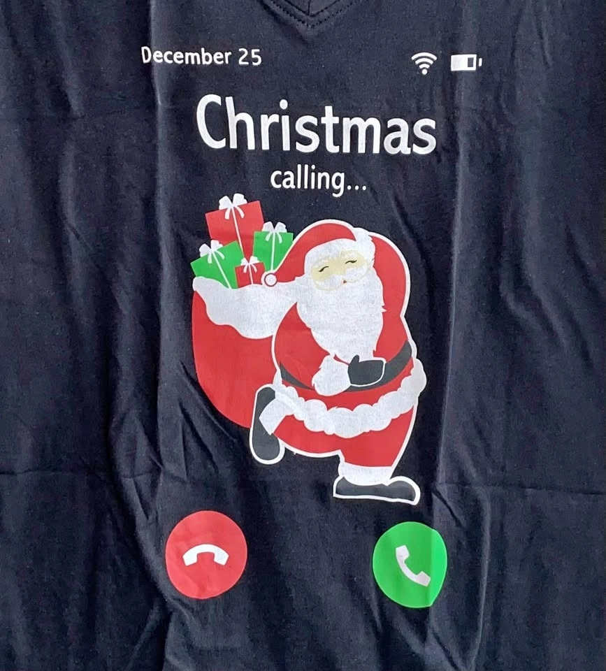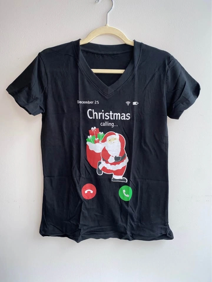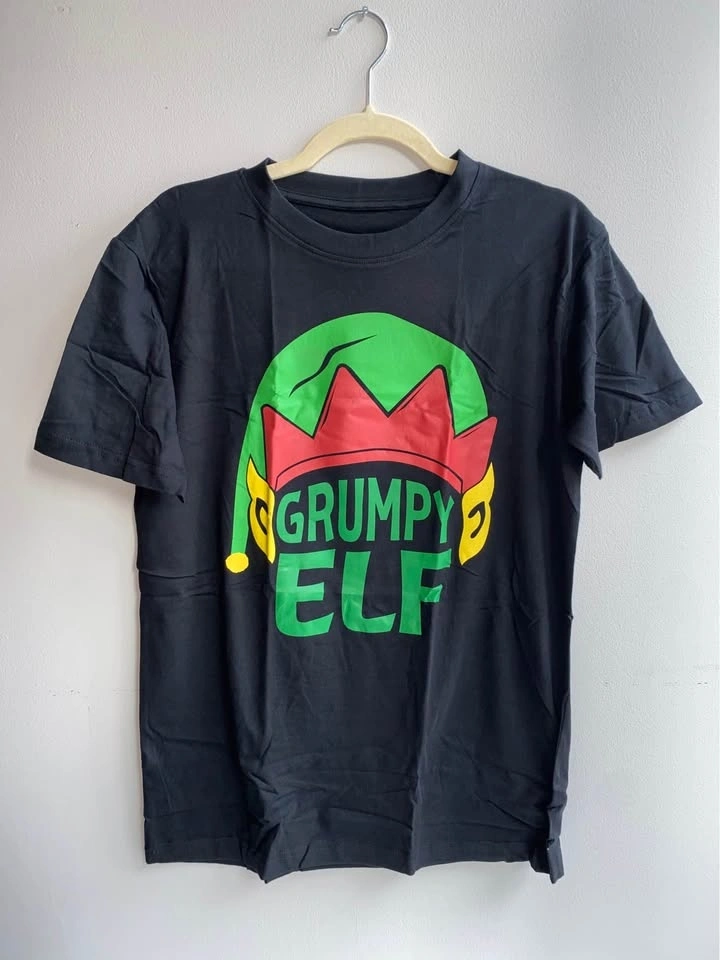 Need a last minute gift? Fun and playful t-shirts. Perfect for adding a touch of humor to your wardrobe. Grumpy Elf - Men’s, Santa’s calling - Women’s, Christmas calories don’t count - Women’s, Christmas is my favourite season - Women’s. Only one of each size left. Four sizes available: S, M, L, XL. Celebrate the festive season with this Christmas t-shirt. Perfect for holiday fun!