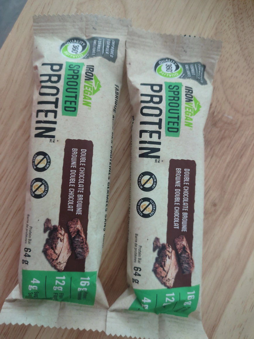 Double chocolate brownie flavoured sprouted protein bars with 16g protein each.