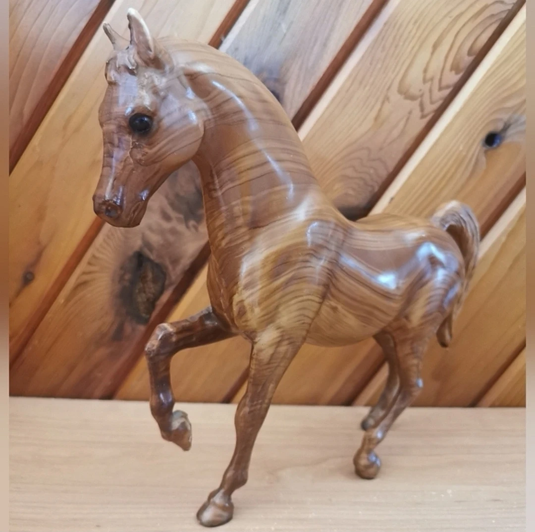 Crafted with exquisite attention to detail, this Breyer Classics model features a beautiful wood grain finish and lifelike anatomy that captures the grace and power of the Arabian horse. In excellent vintage condition, 8 inch tall, 10 inch long