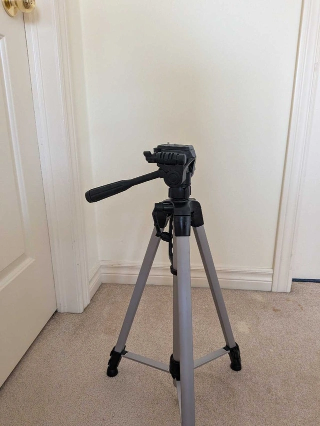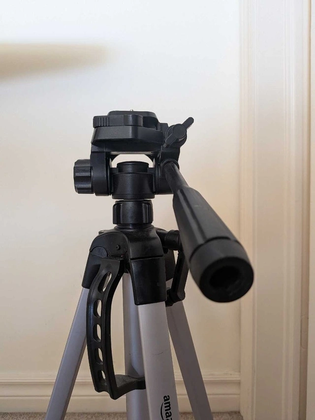 Selling a like-new Amazon Basics 60-inch tripod, perfect for photography and videography enthusiasts. Brand: Amazon Basics. Maximum Height: 60 inches. Material: Lightweight aluminum. Leg Sections: 3. Head Type: 3-way pan/tilt head. Quick-Release Plate: Yes. If you're seeing this ad, the tripod is available. Cash accepted.