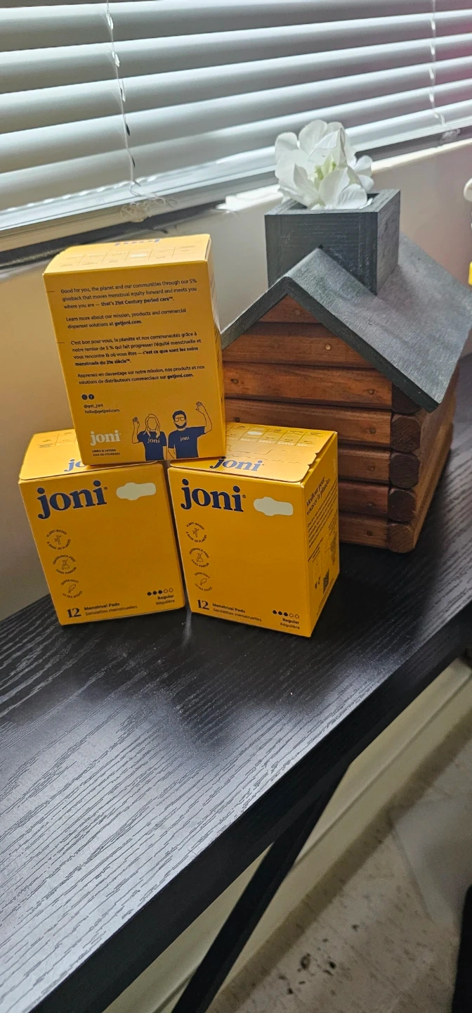 3 packs of Joni Regular Pads, each containing 12 biodegradable pads. Designed with absorbent materials for comfort and protection. Great for everyday use!