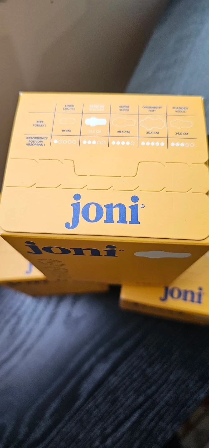 3 packs of Joni Regular Pads, each containing 12 biodegradable pads. Designed with absorbent materials for comfort and protection. Great for everyday use!