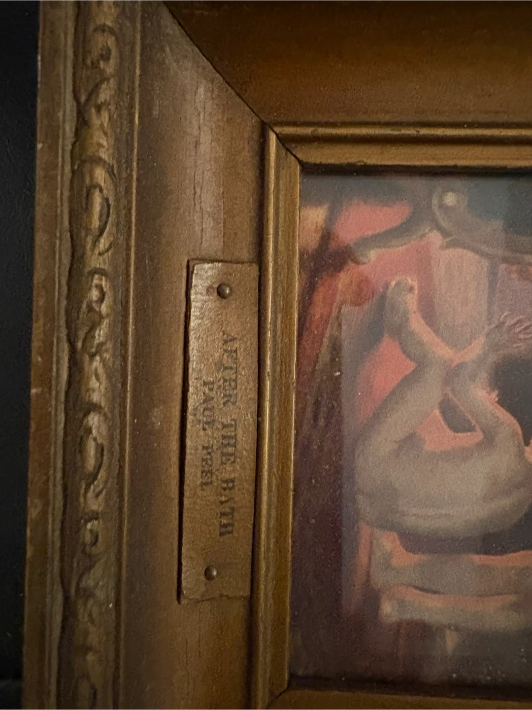 Two framed art prints, 'After the Bath' and 'Model', by artist Paul Peel. These are a lovely addition to any art collection. Ready to hang in your home! Real wood frames with artist brass plates. These are 7” x6” beauties price is firm for the pair
