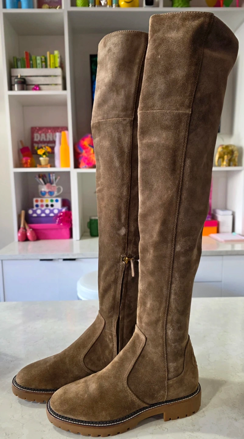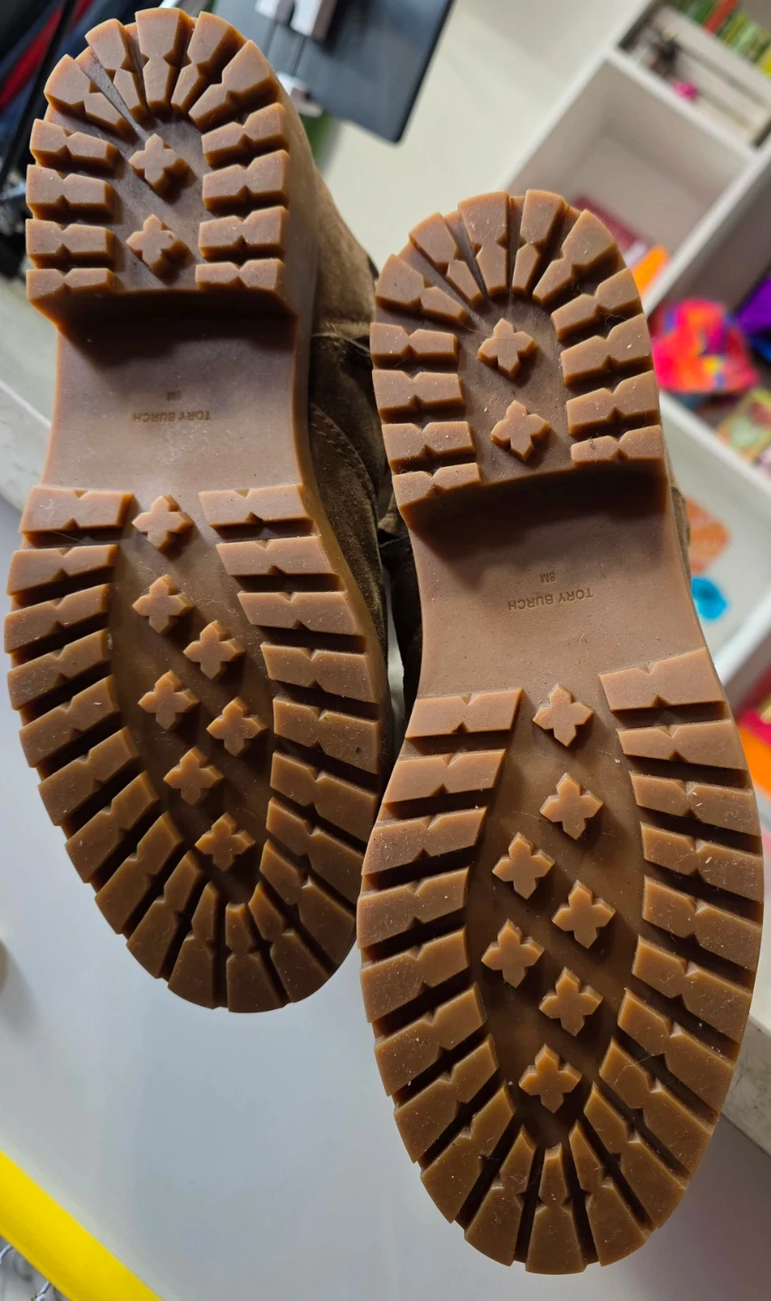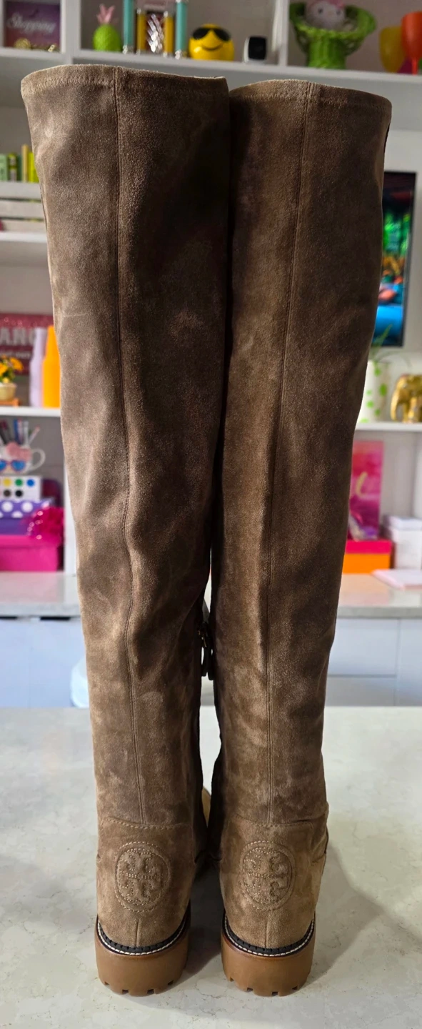 Selling a pair of Tory Burch boots in a lovely brown suede! They're a size 8 and have the Tory Burch logo on the back. These boots are perfect for adding a touch of style to any outfit