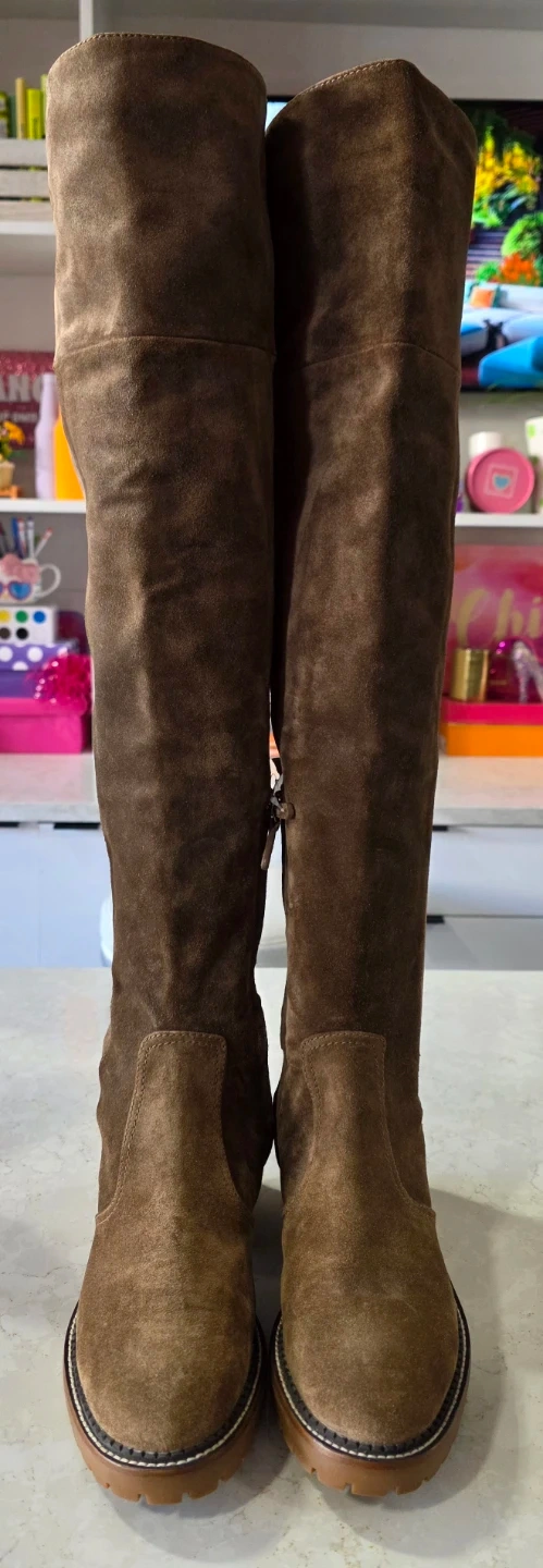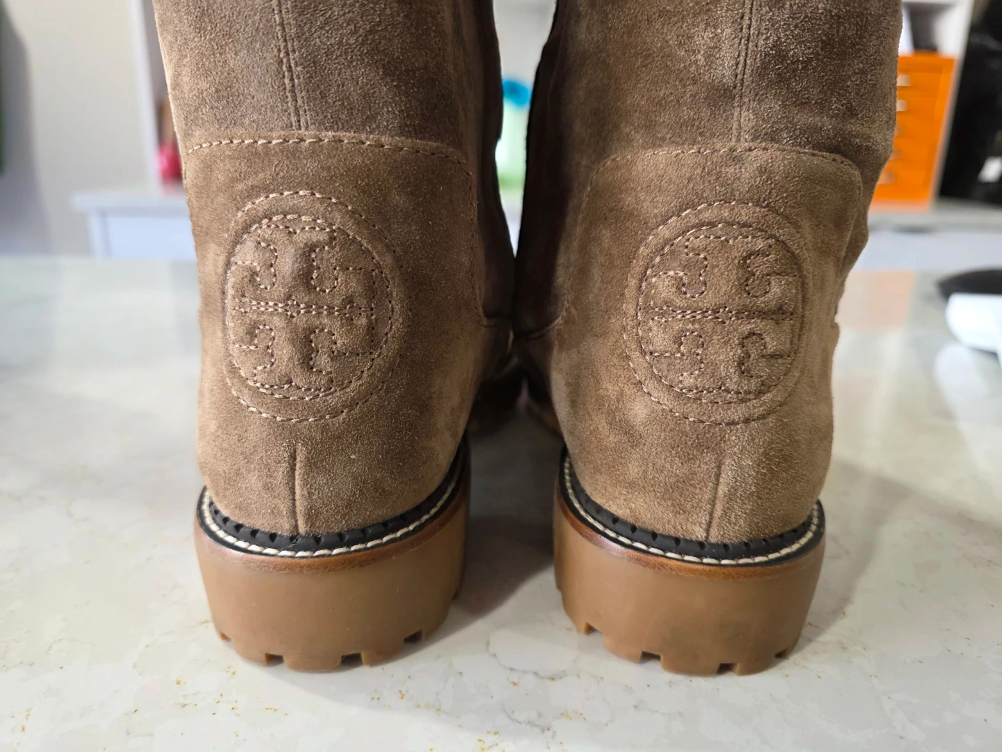 Selling a pair of Tory Burch boots in a lovely brown suede! They're a size 8 and have the Tory Burch logo on the back. These boots are perfect for adding a touch of style to any outfit