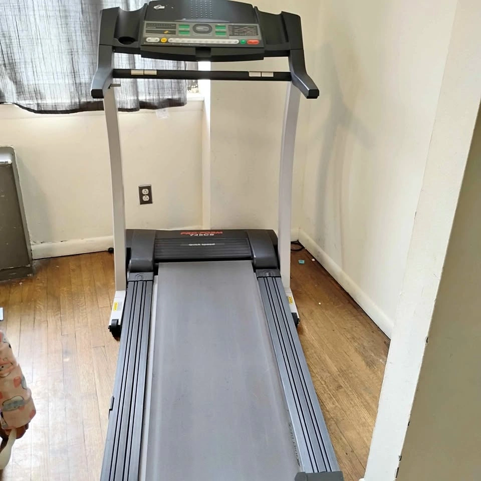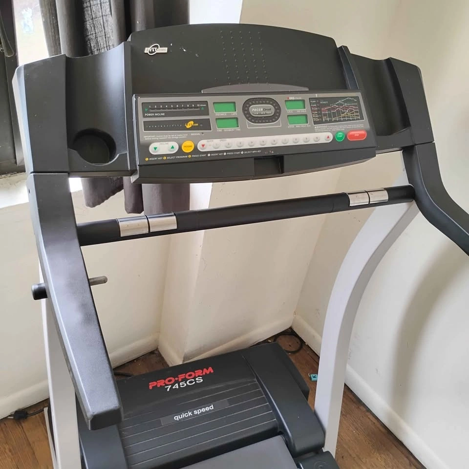 Sturdy Pro-Form 745CS treadmill with 'quick speed' function, 'Pacer Circuit' display, power incline, and EKG pulse sensors on the handlebars. Great for getting those steps in! Still works like new.
