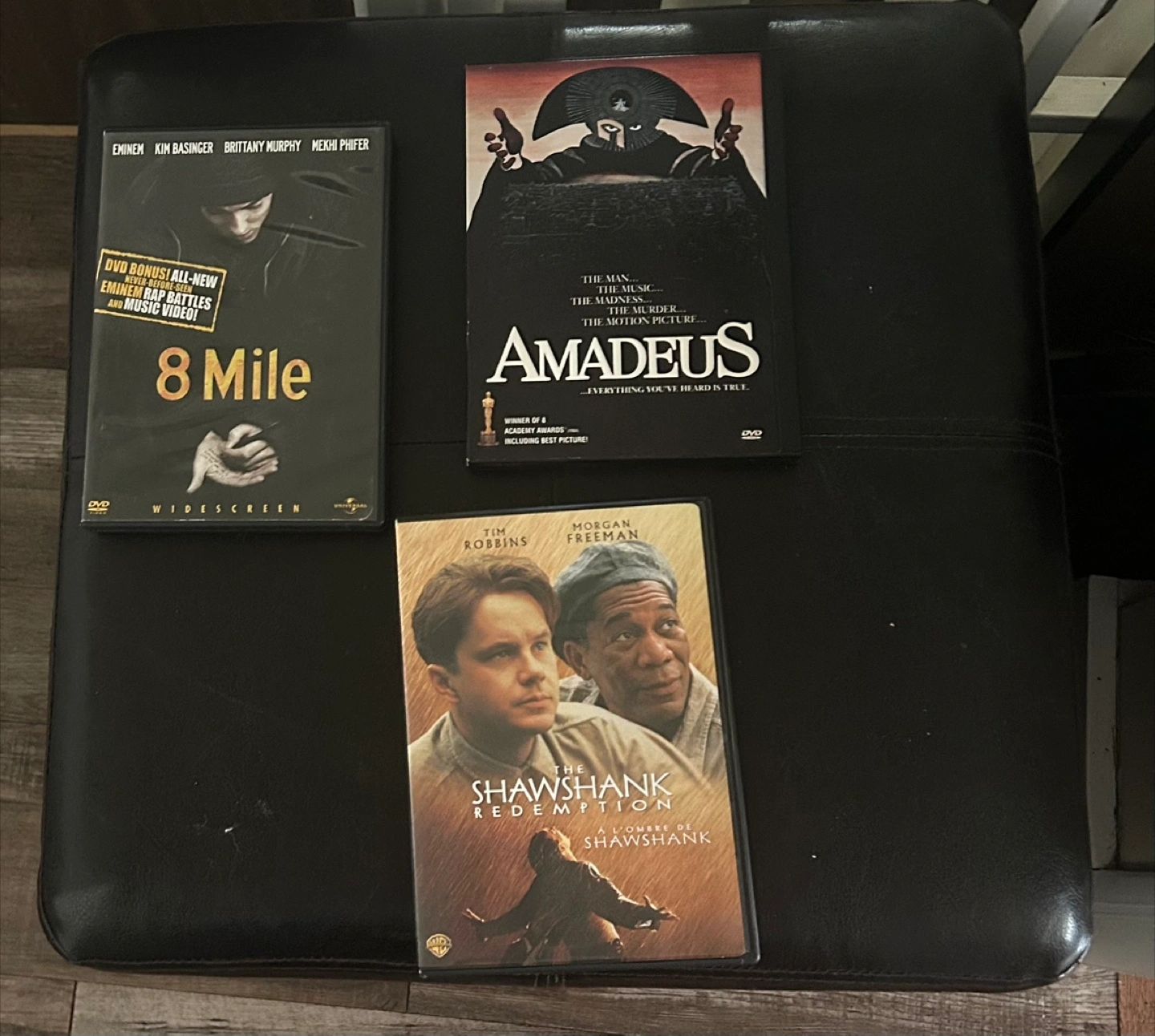 283Selling a bundle of three classic DVDs! Included are 8 Mile, Amadeus, and The Shawshank Redemption. All in good condition and ready for your next movie night!